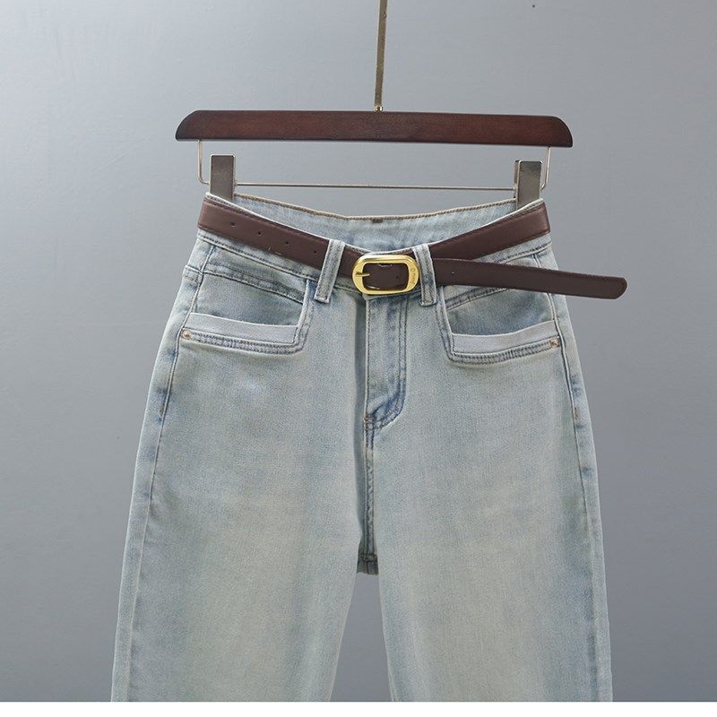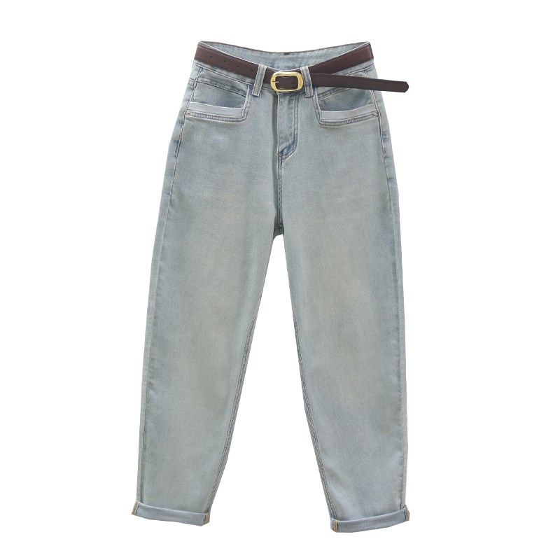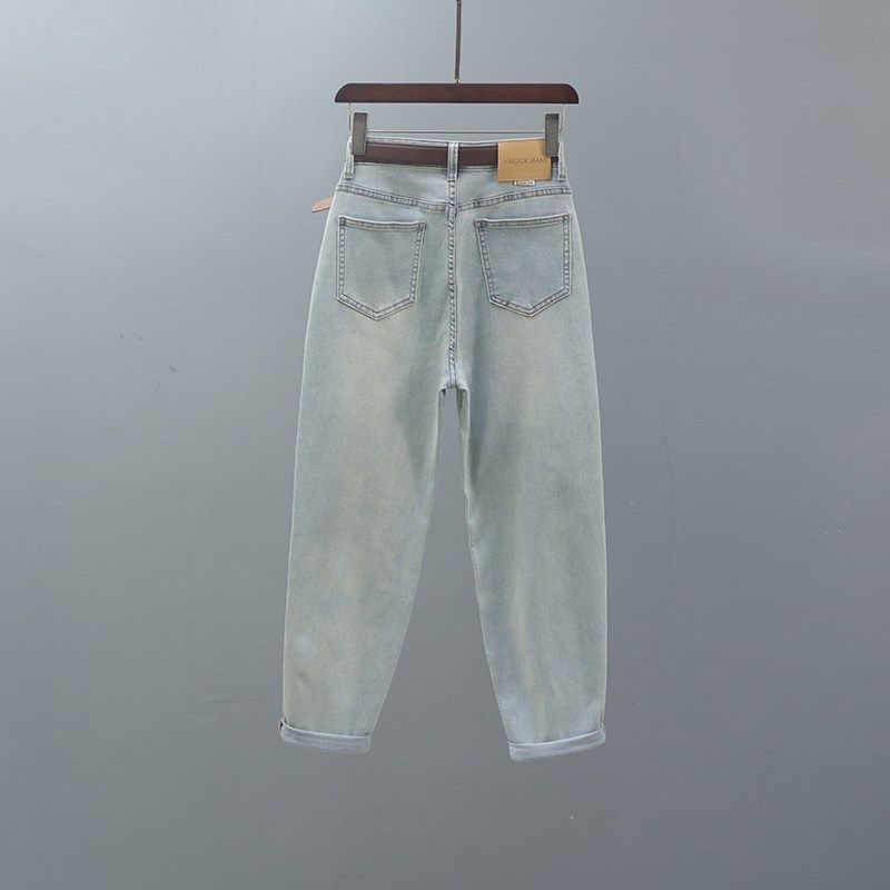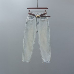 女欧货复古浅蓝色宽松休闲小脚萝卜裤 2024春秋新款 高腰哈伦牛仔裤