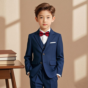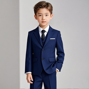 儿童小西装 藏青色亮片男童小主持人英伦风男孩钢琴演出服 套装