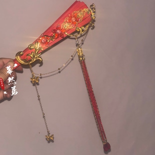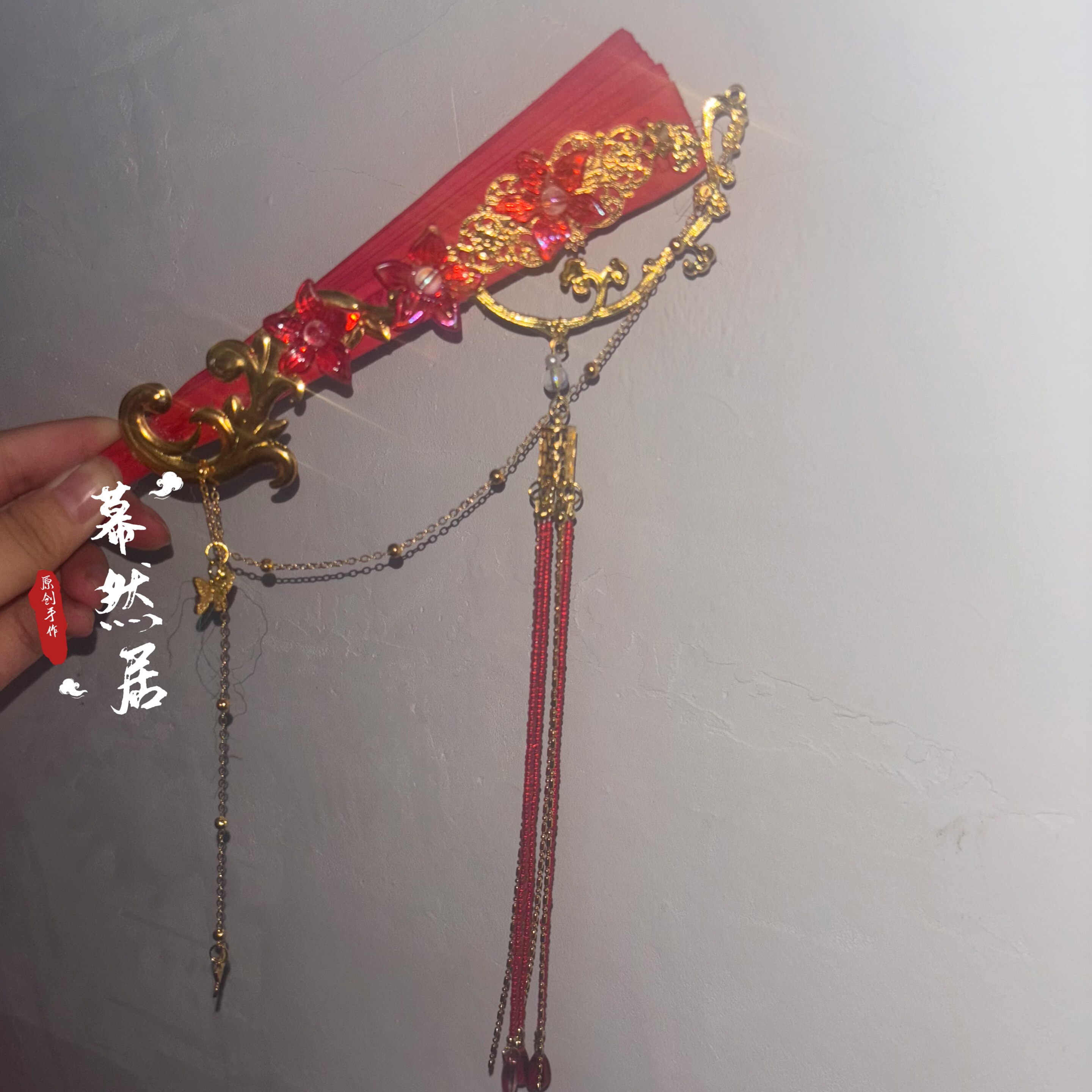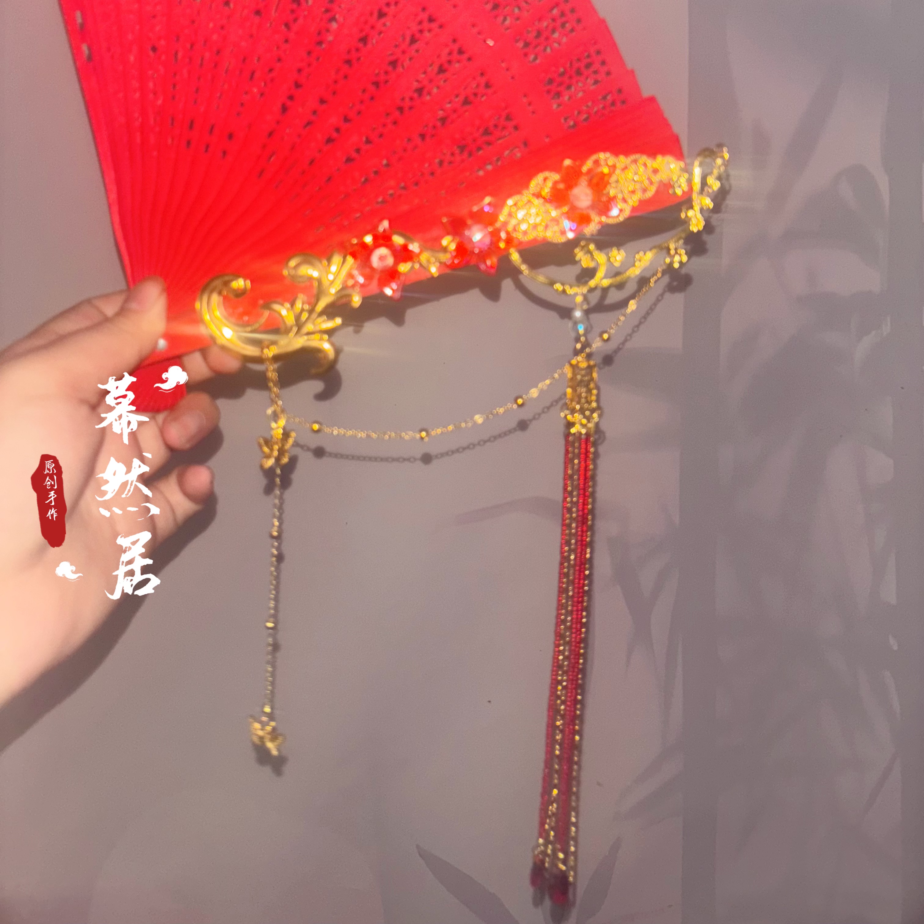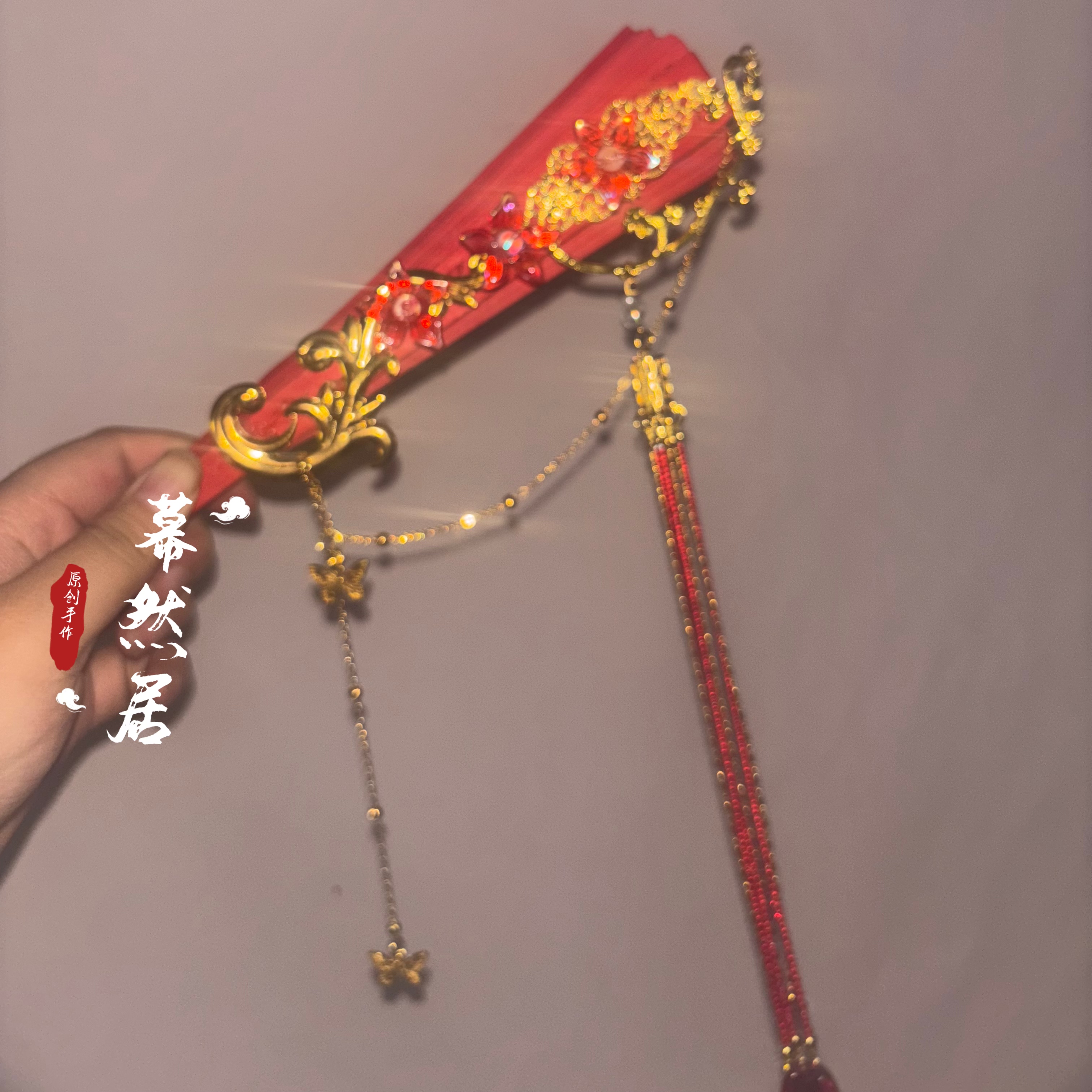 幕然居原创红色米珠蝴蝶折扇超仙花神百搭手持复古拍照古代cos婚
