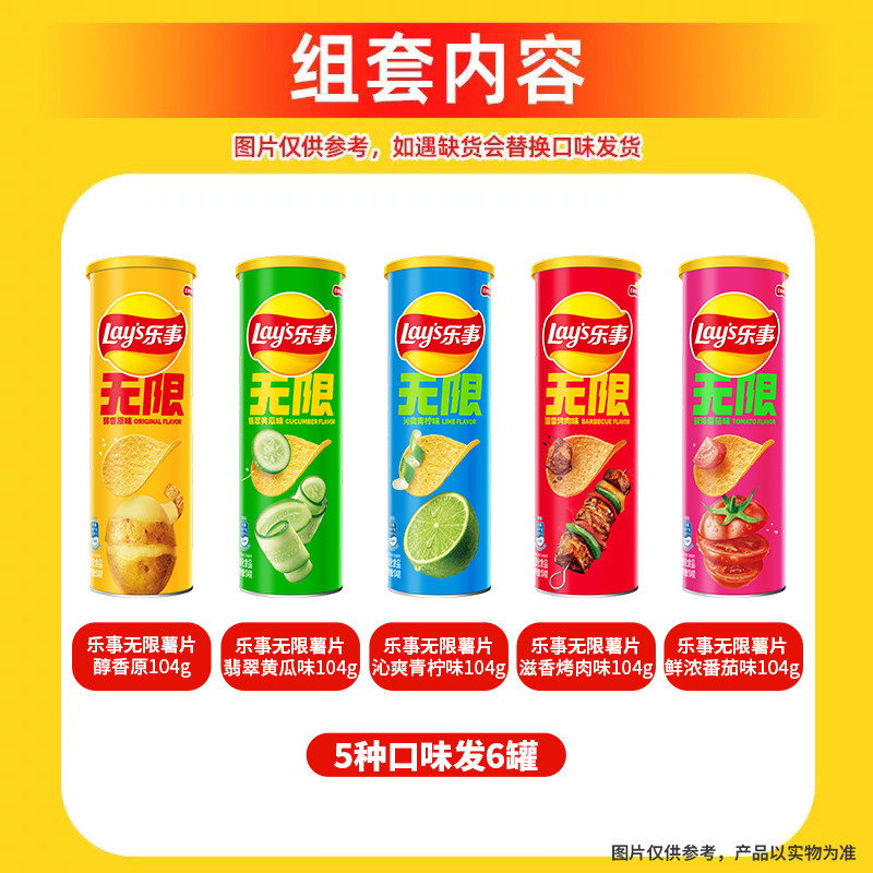 乐事薯片罐装 多种混合口味礼包104gx6罐内含小黄人联名编织袋
