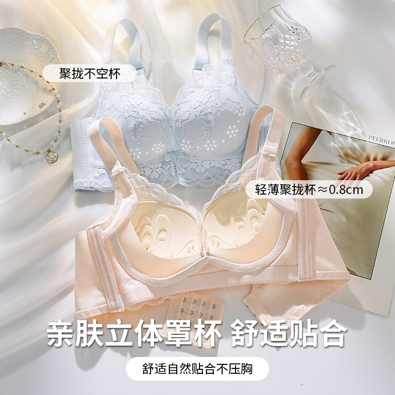 内衣女小胸聚拢承托收副乳提拉防下垂透气蕾丝调整型无钢圈文胸罩