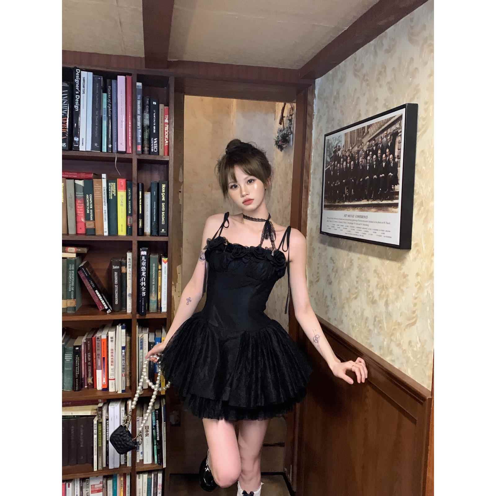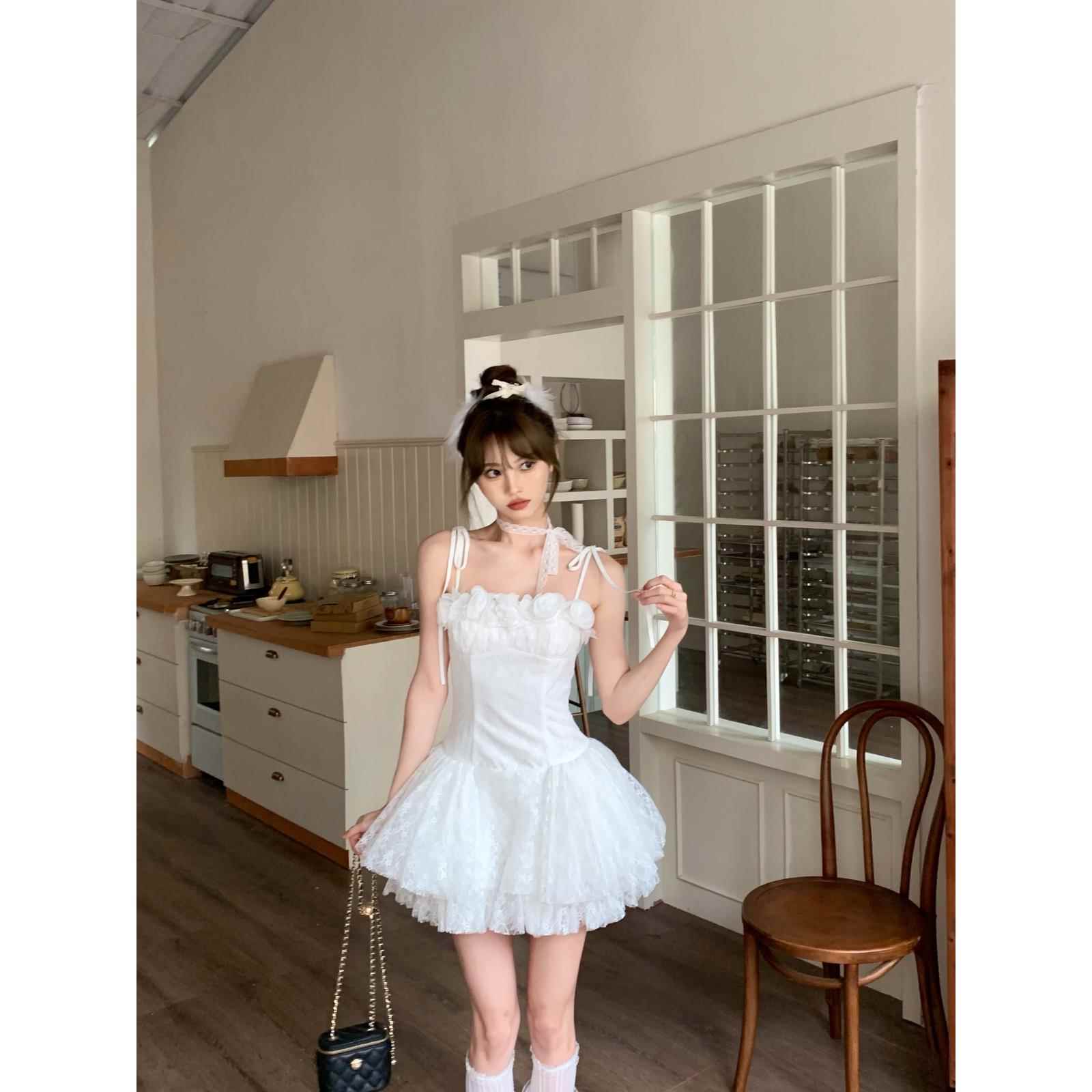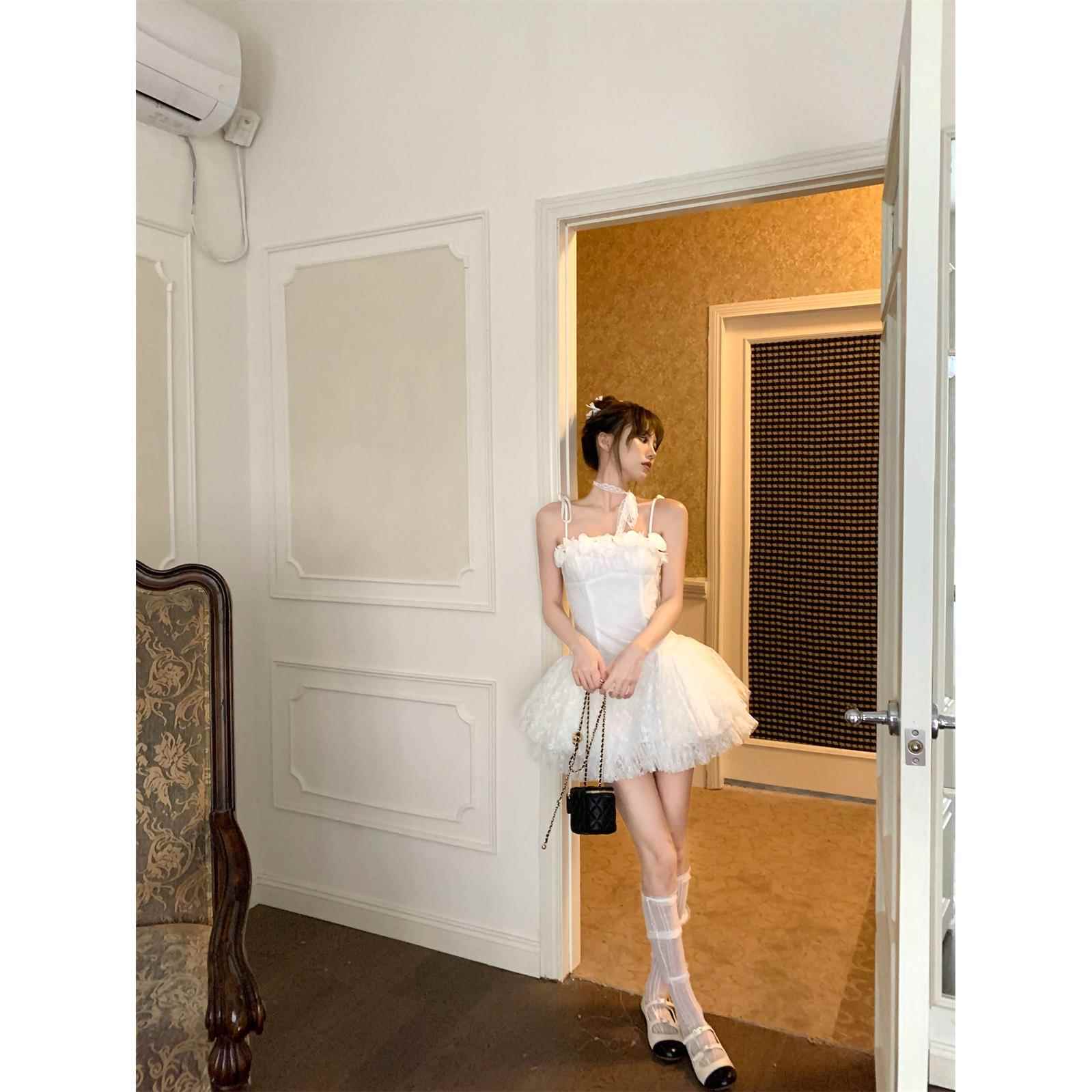 越韩小鱼 纯白蕾丝蓬蓬仙女裙芭蕾裙纯欲仙气吊带裙 坠梦天鹅湖