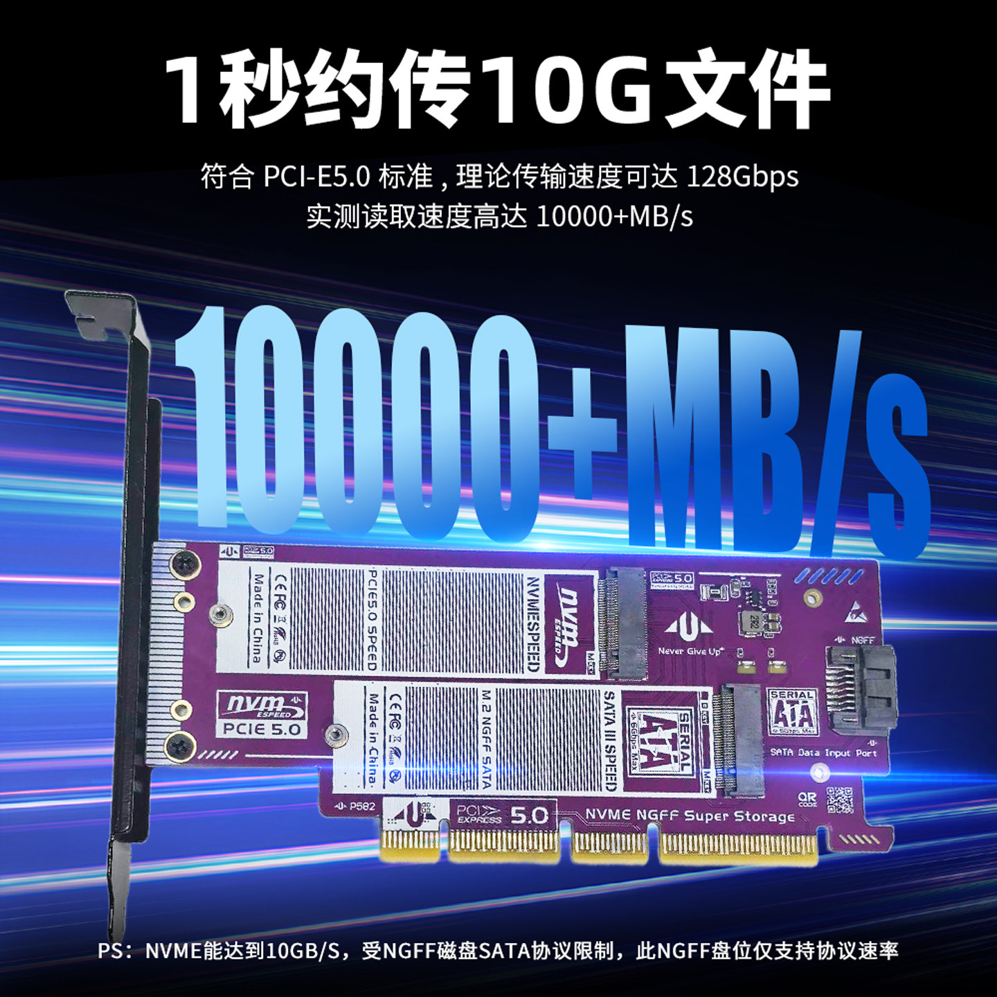 nvme转接卡NGFF M2双盘位转接卡PCIE5.0 SATA拓展卡 X16 Auiu