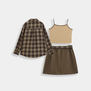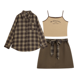 学院风三件套装 微胖 女2025秋新款 美式 短裙吊带 IEF 衬衫 爱依服