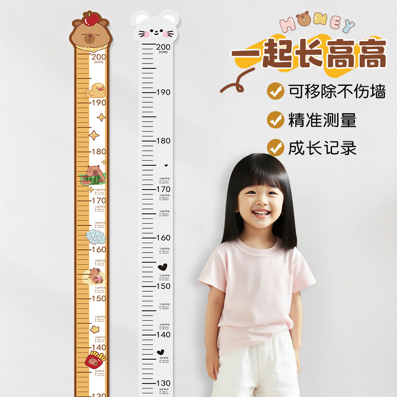 卡皮巴拉身高测量墙贴儿童量身高尺不伤墙可移除可爱卡通墙贴纸