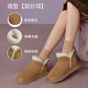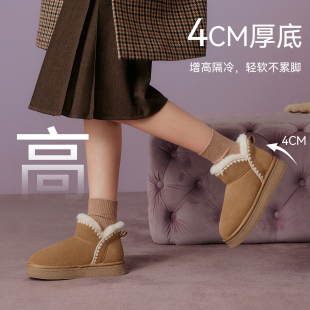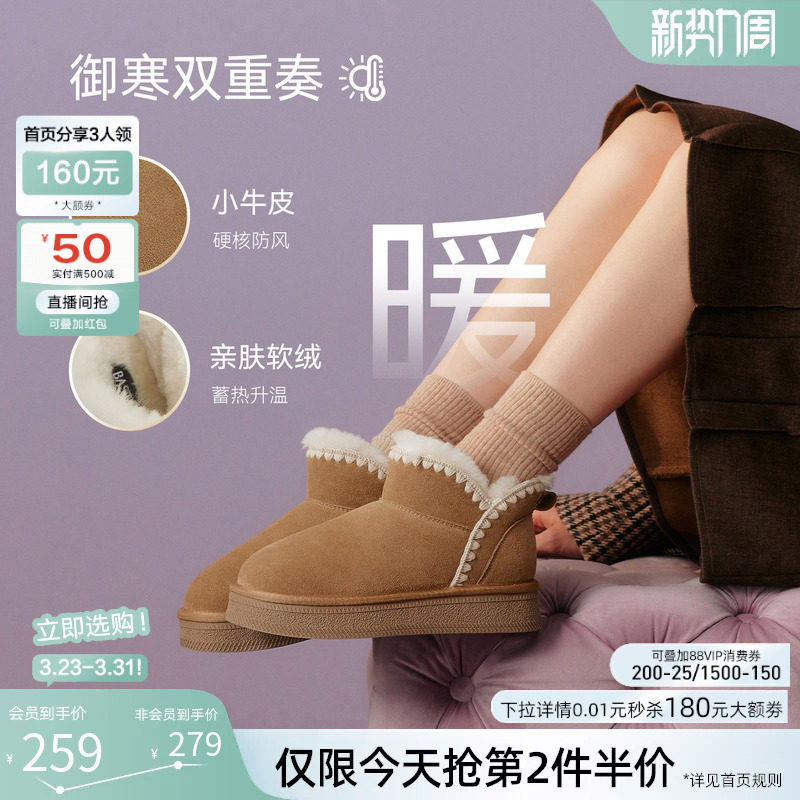 小雪团 保暖女棉鞋 百思图冬新款 雪地靴毛毛鞋 短靴 加绒勃肯鞋