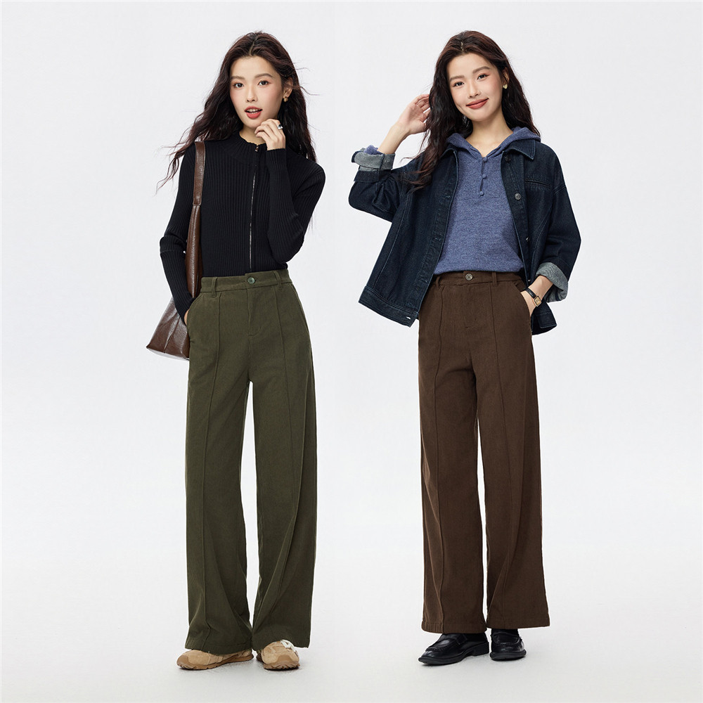 灯芯绒长裤 破骨高腰休闲阔腿裤 05415676 子女秋冬新款 佐丹奴条绒裤
