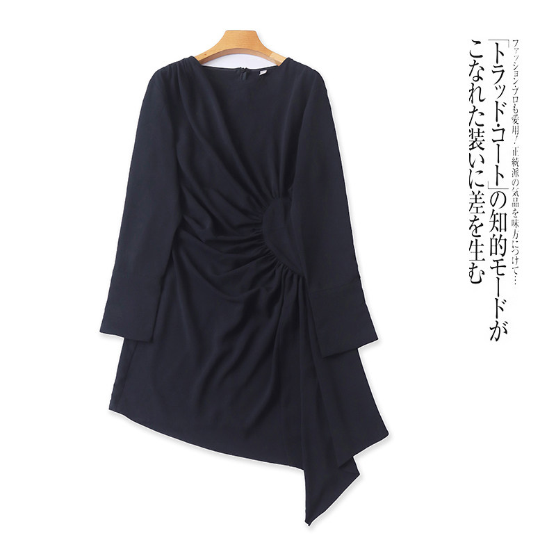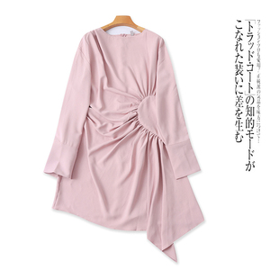 圆领收腰气质通勤风洋气中长裙 连衣裙新款 外贸欧美单时尚 女士长袖