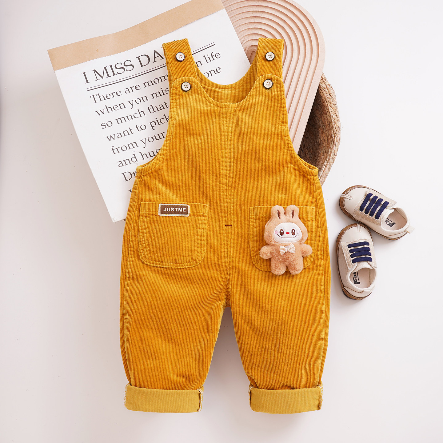 子纯棉可开裆 1岁婴幼儿童裤 灯芯绒宝宝背带裤 男童女童小童春秋季