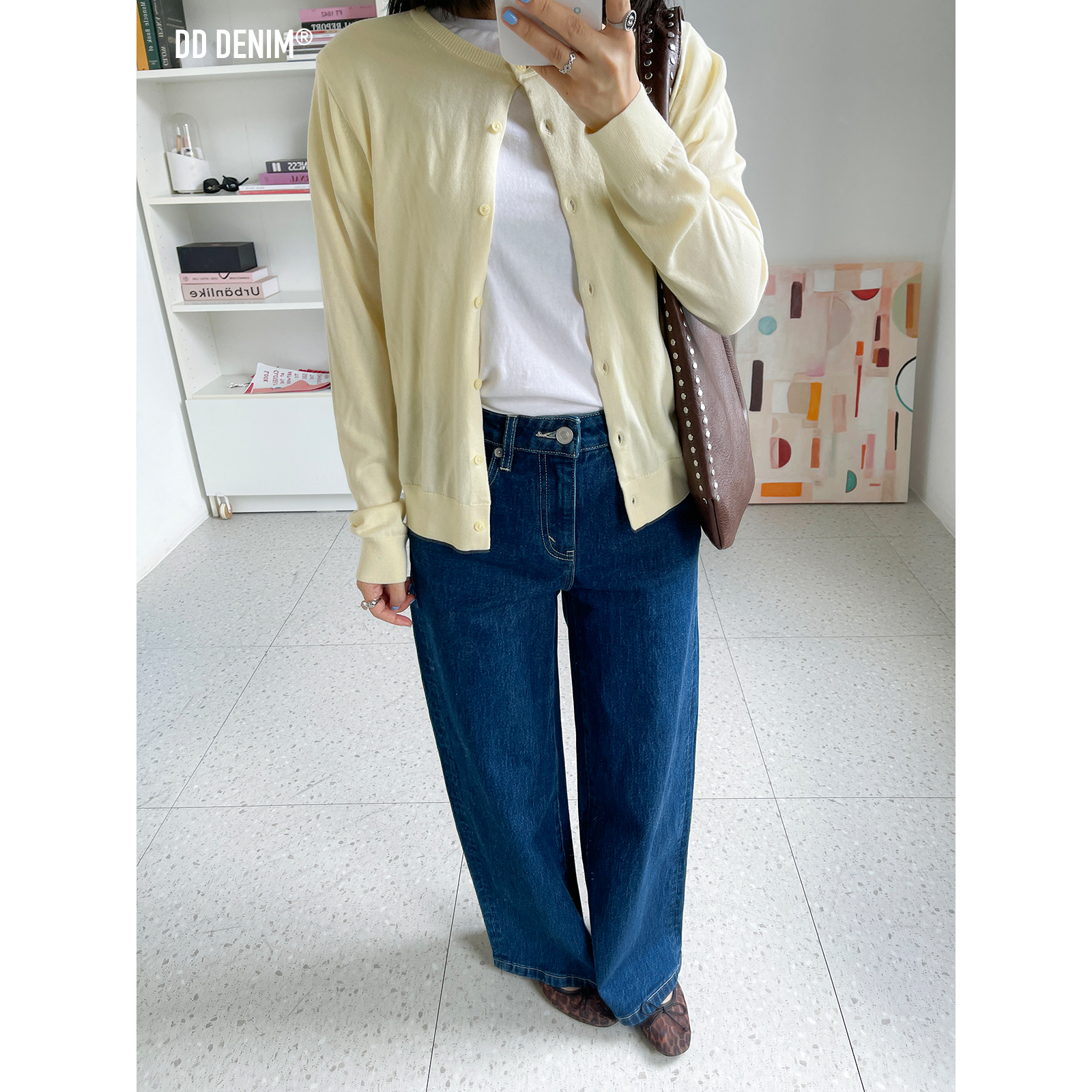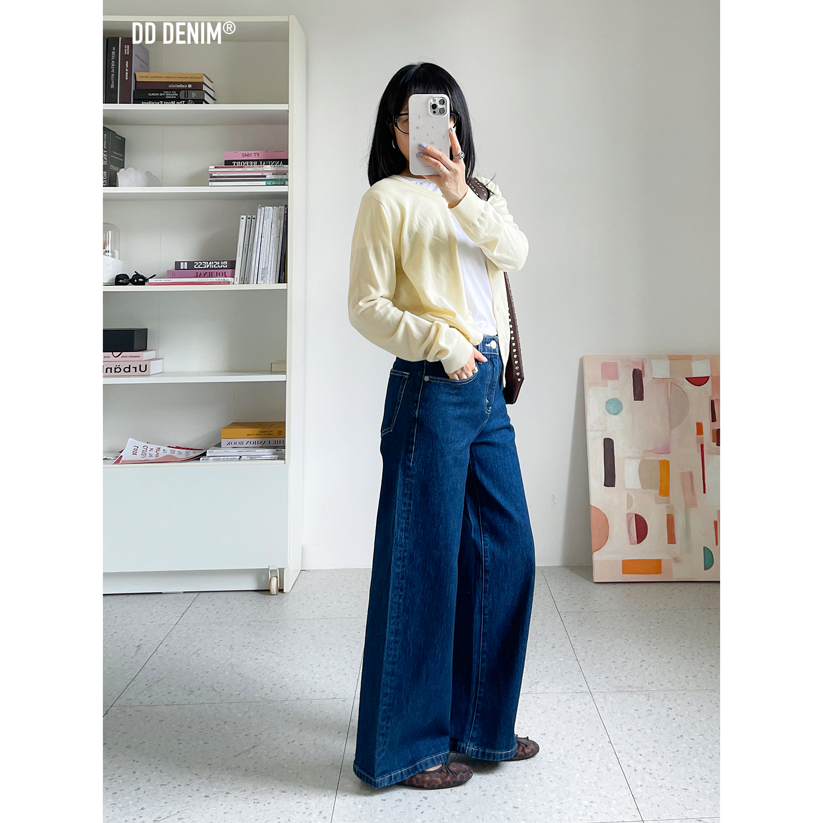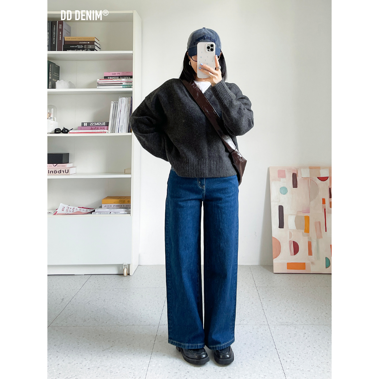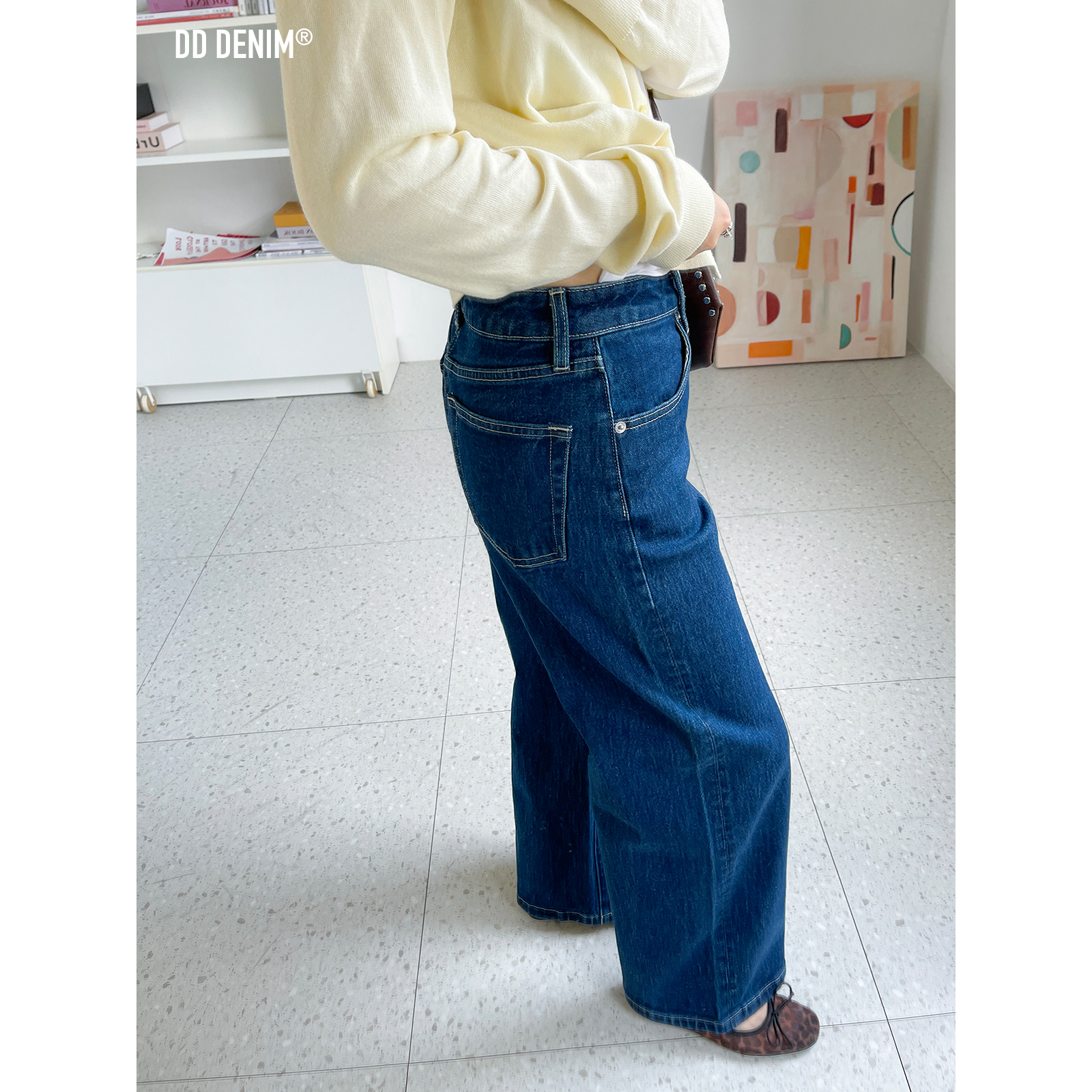 DD「靛蓝Indigo」深蓝色微弹中腰廓形复古直筒牛仔裤 女显瘦长裤