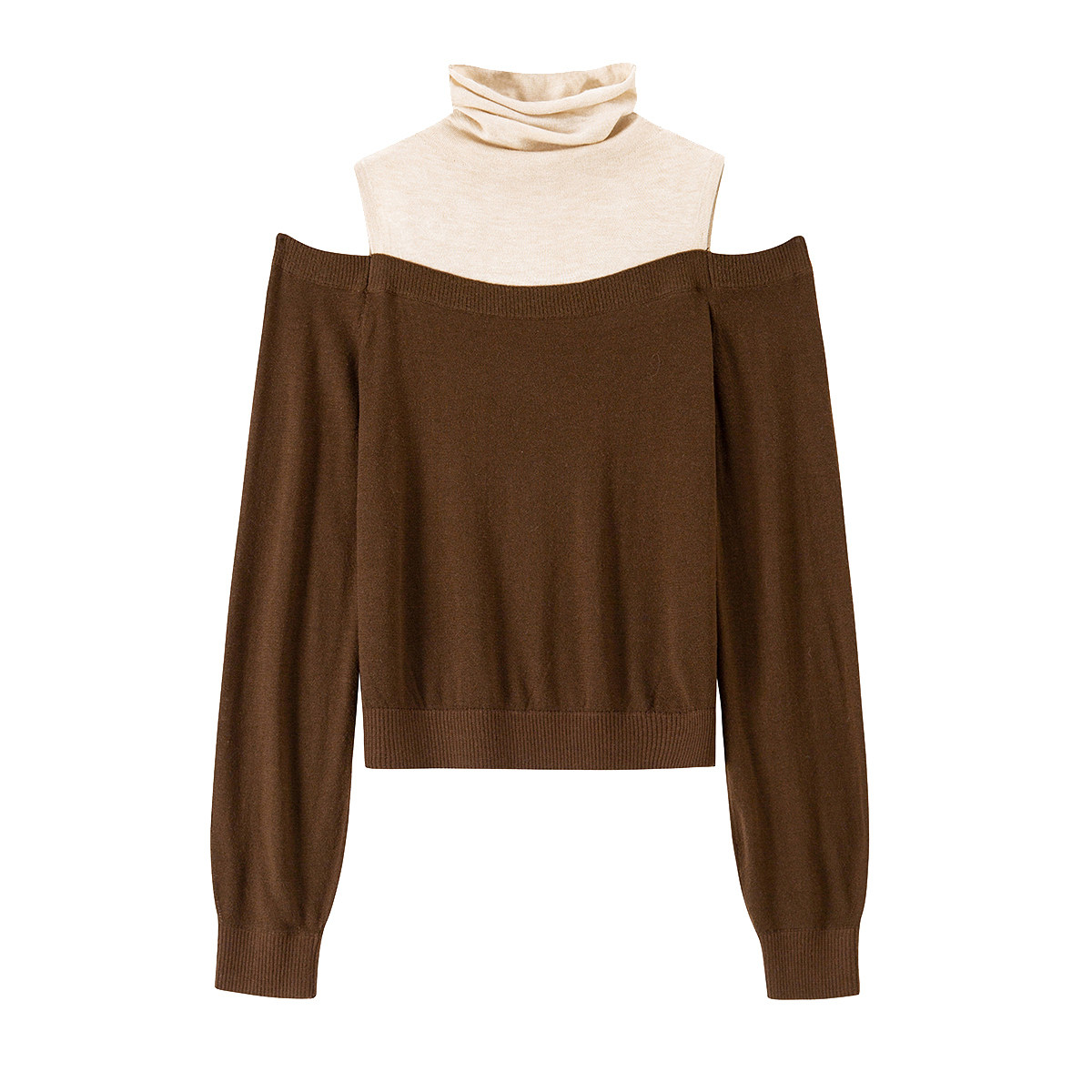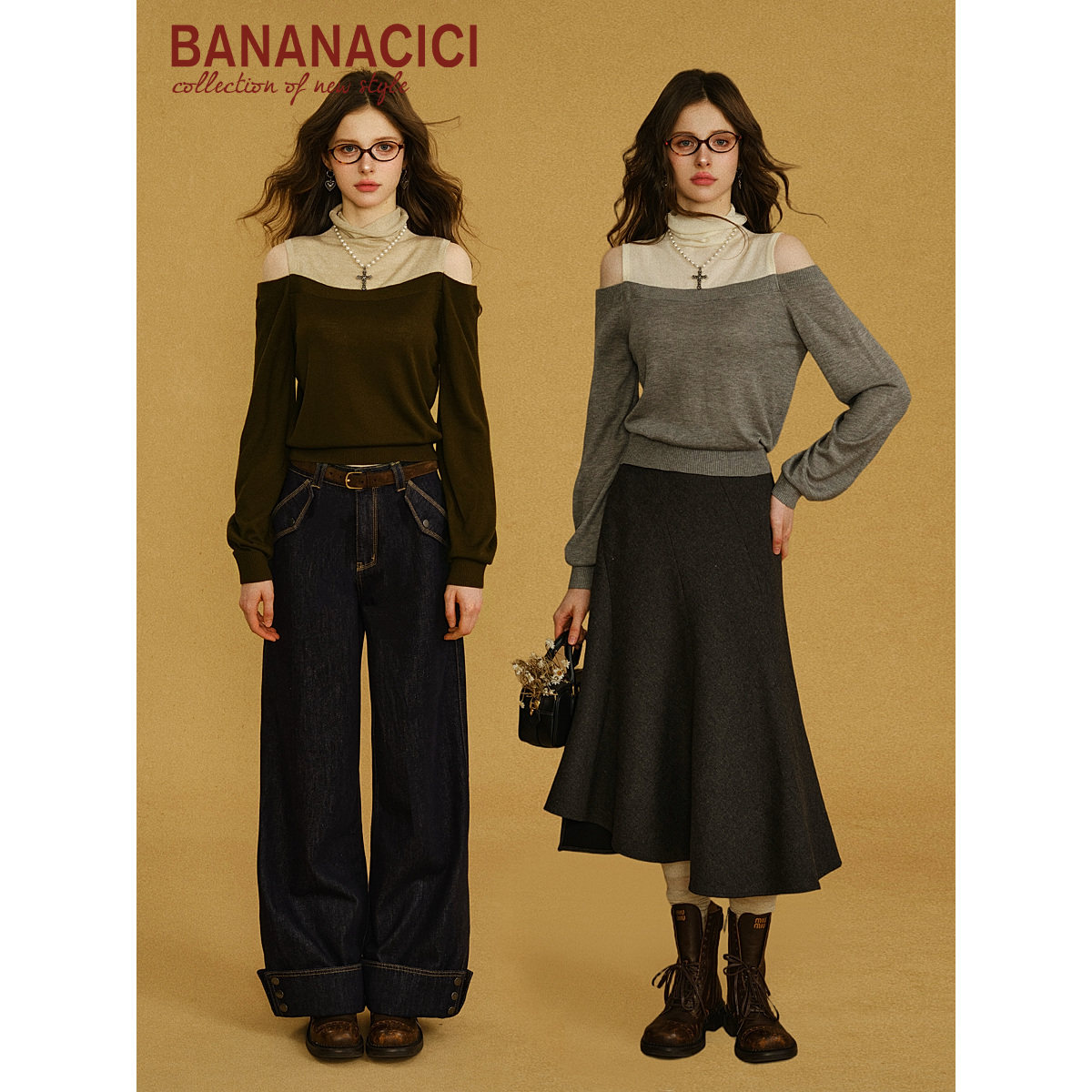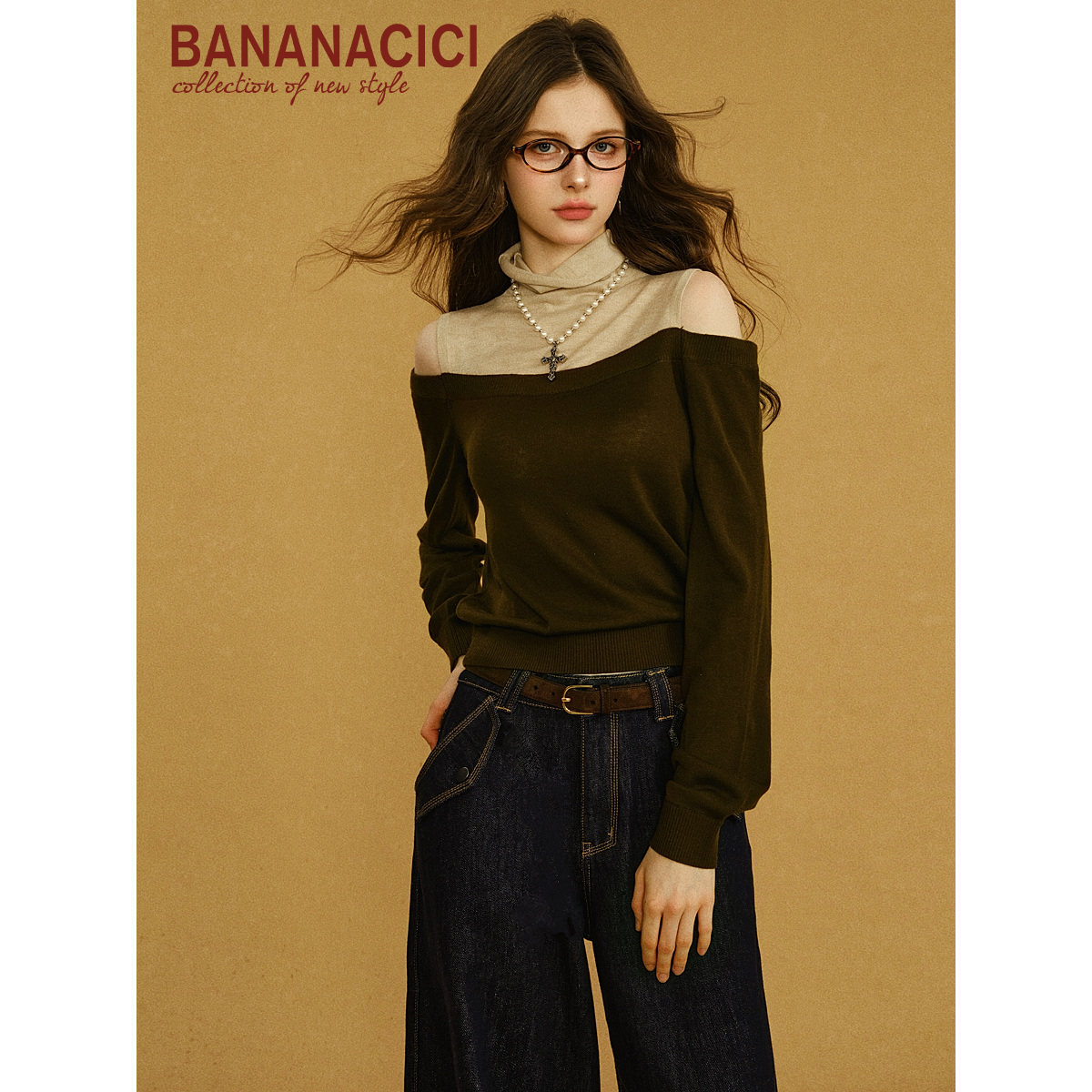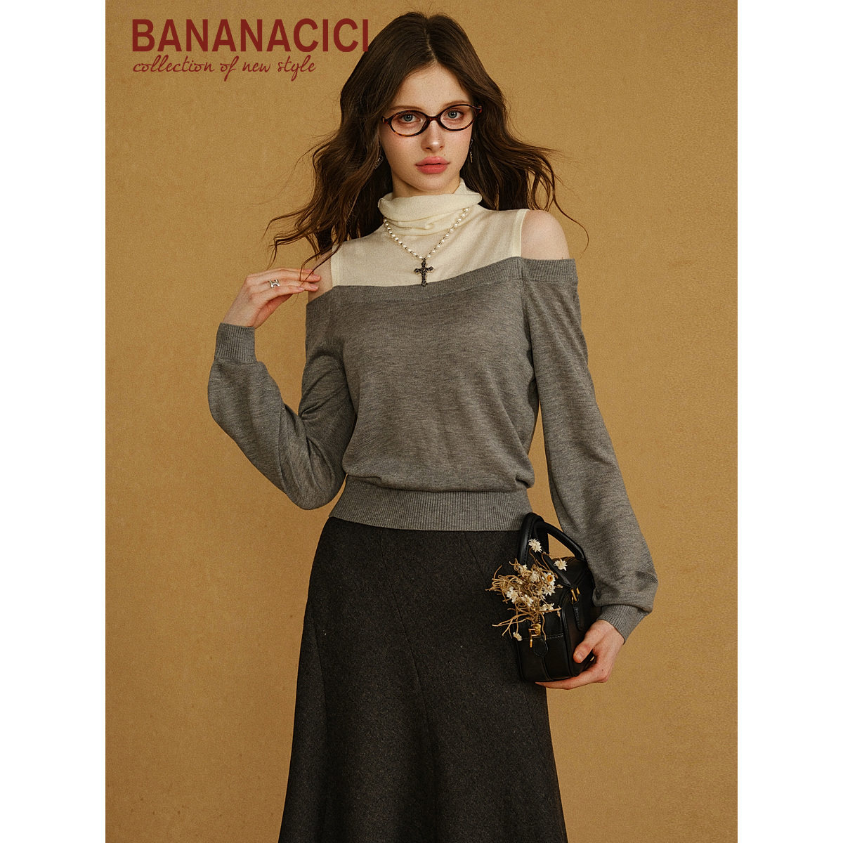 立体堆堆领露肩慵懒长袖 新款 撞色拼接毛衣 CICI2025年冬季 BANANA