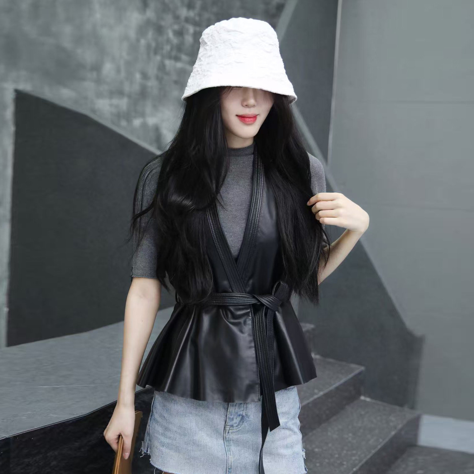 KY真维斯黑色马甲棉服女冬季 韩系小个子宽松坎肩连帽外套 2025新款