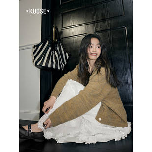 半高领设计感针织开衫 新款 洋气紫色立领方扣毛衣女2025年春季 韩版