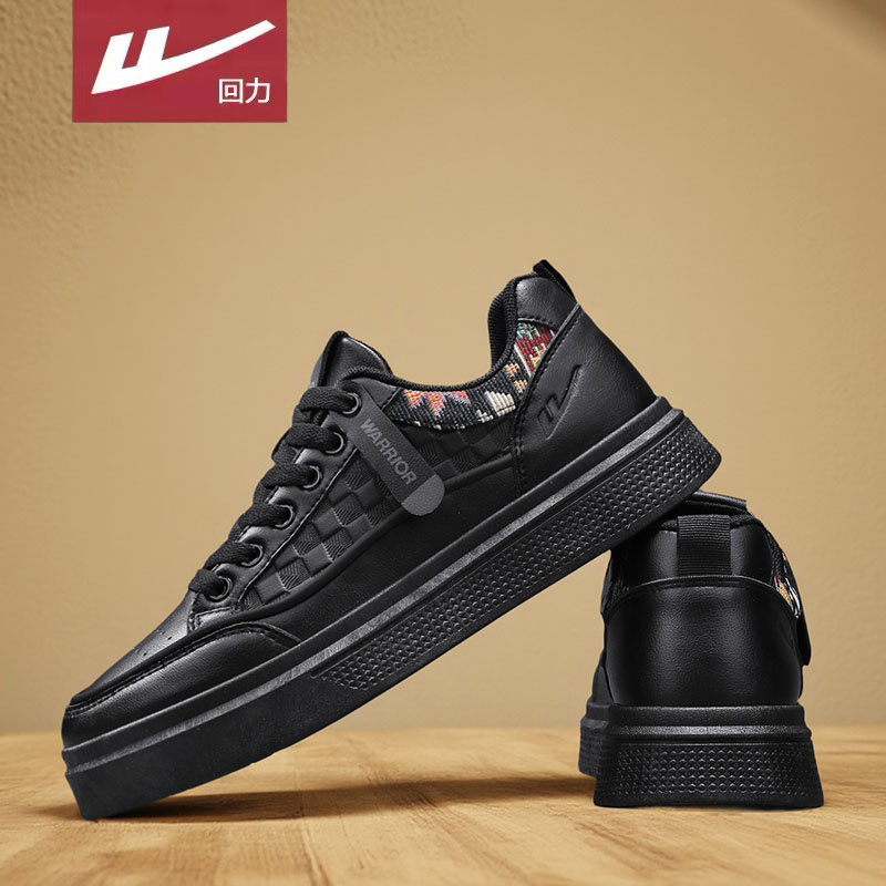 男士 秋季 休闲鞋 英伦黑色皮面运动板鞋 男 回力男鞋 工作潮鞋 2025新款