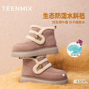 短靴 毛毛鞋 天美意玩具总动员绒绒拿铁厚底加绒雪地靴棉鞋 女冬新款