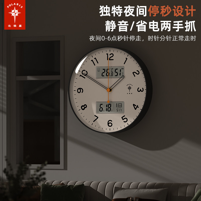 北极星客厅简约静音挂钟卧室大气时尚 石英钟家用时钟挂墙创意钟表