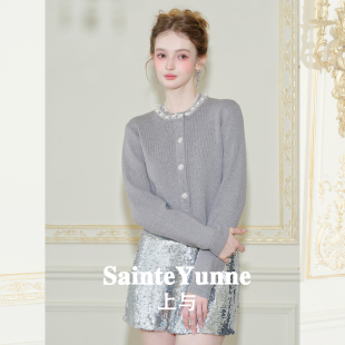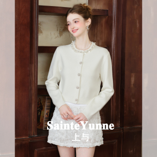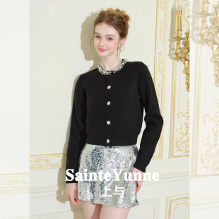 SainteYunne上与千金贵气设计感圆领钉钻毛织开衫 秋冬短外套WT841