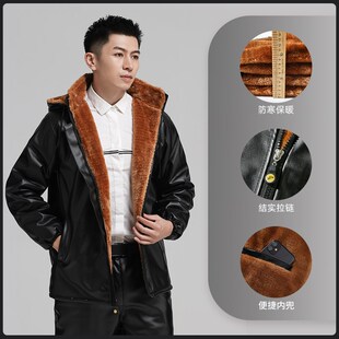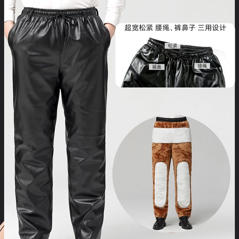 套装 保暖皮衣皮裤 男 男加绒加厚防水防油外卖骑行防风耐磨冬季 皮裤