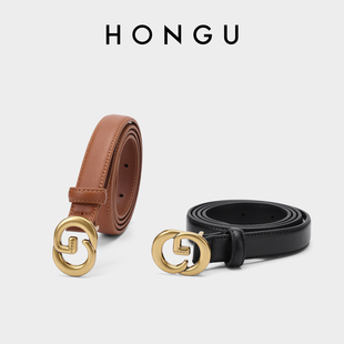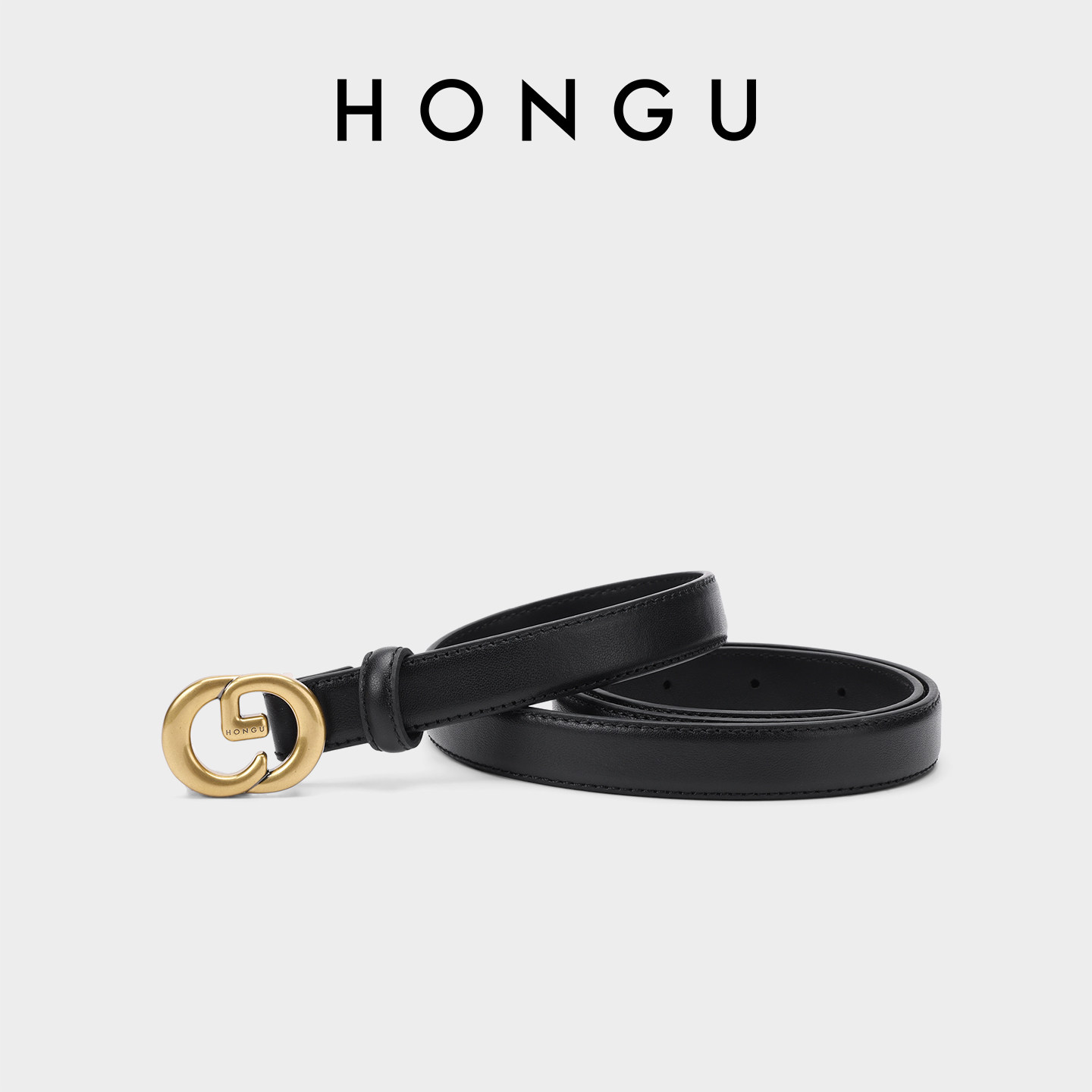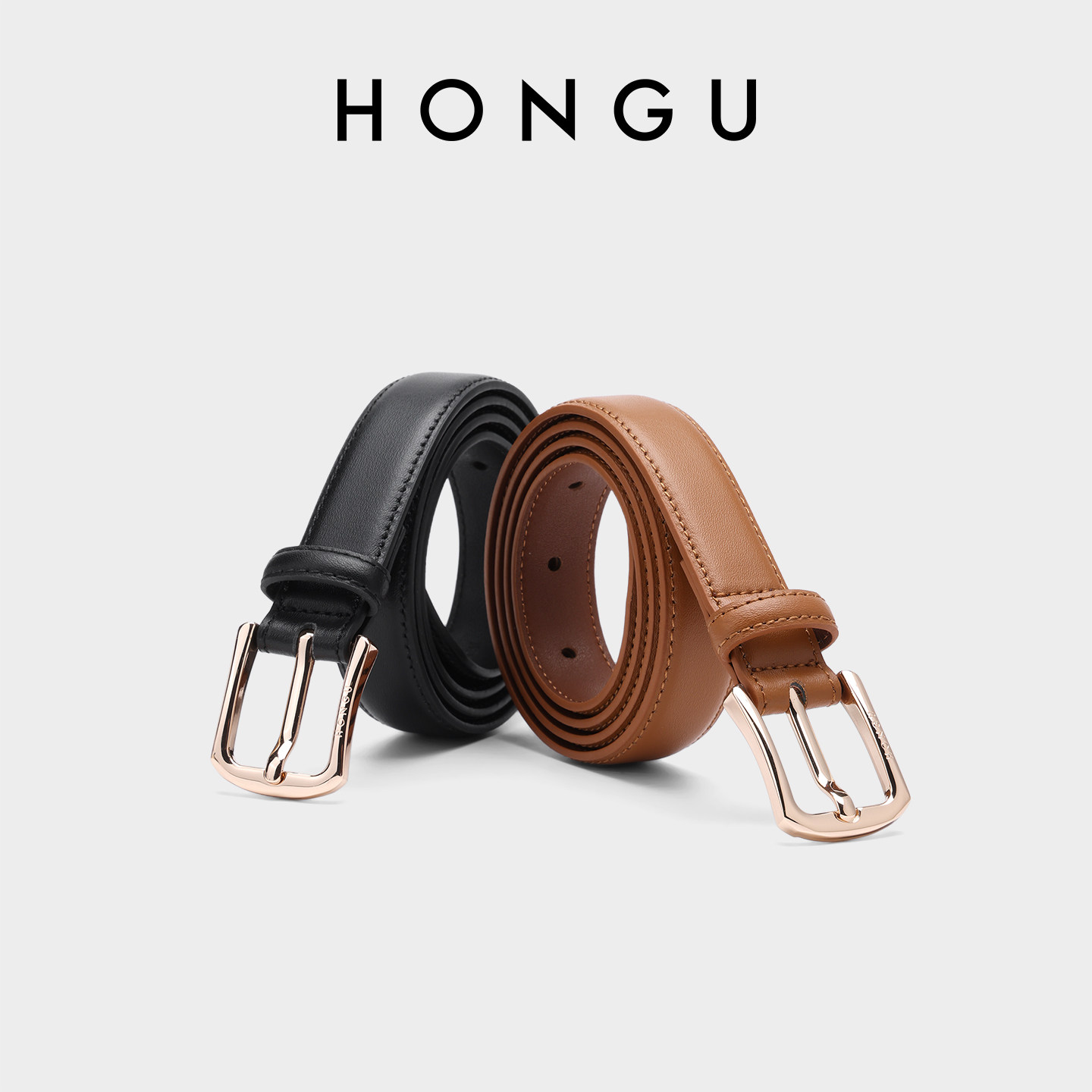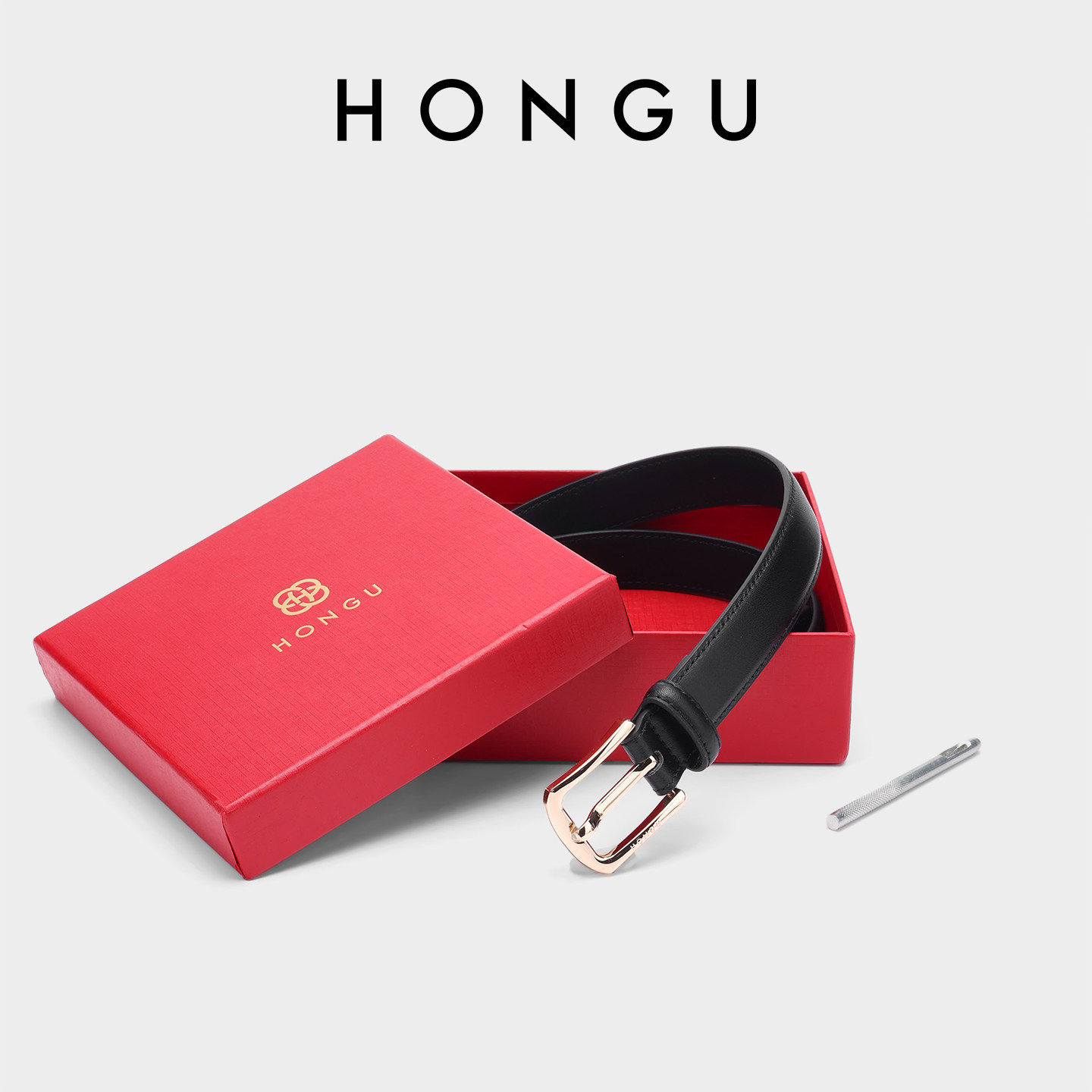 带 饰裤 红谷女士皮带针扣高档牛皮金属纽扣礼盒装 腰带百搭装