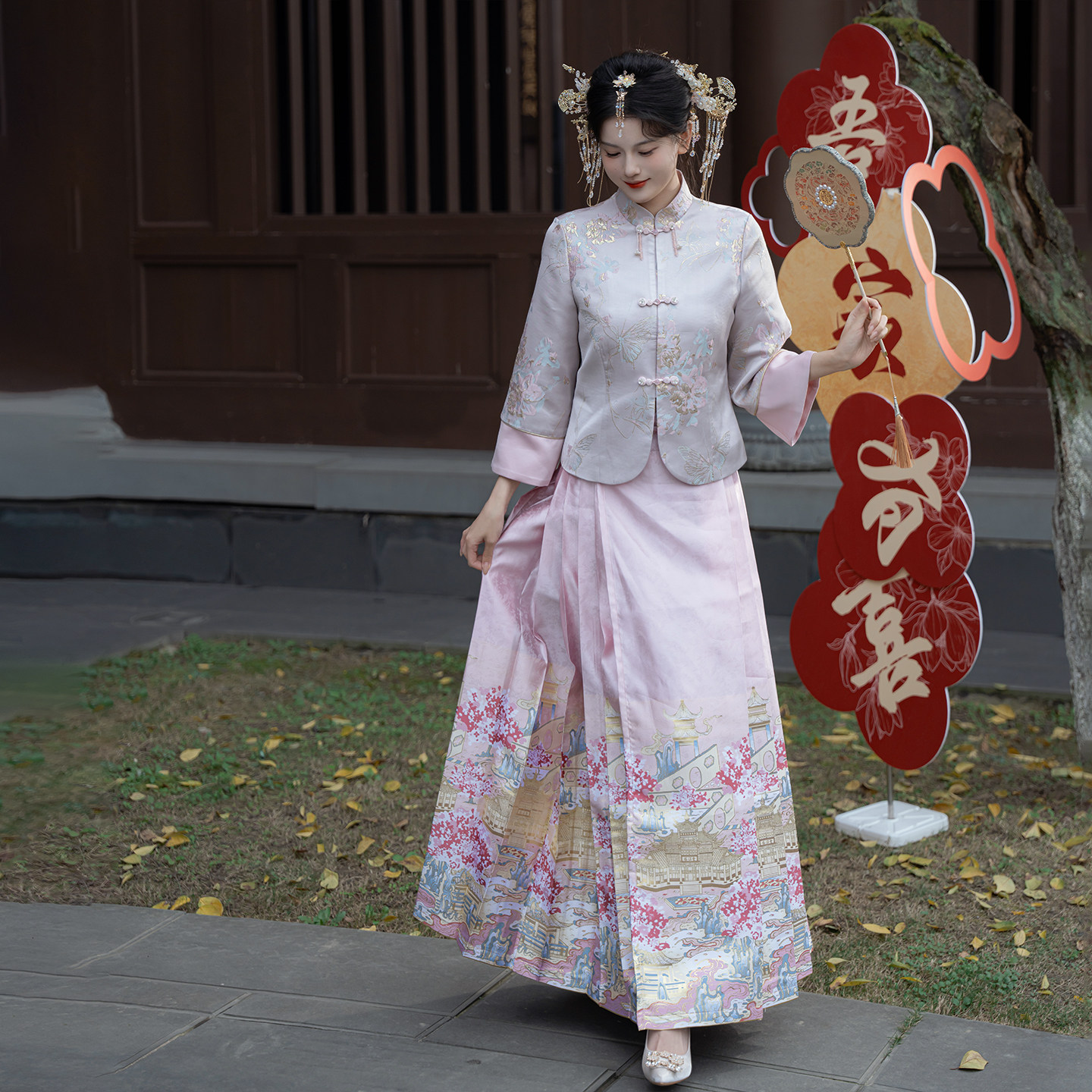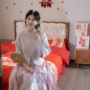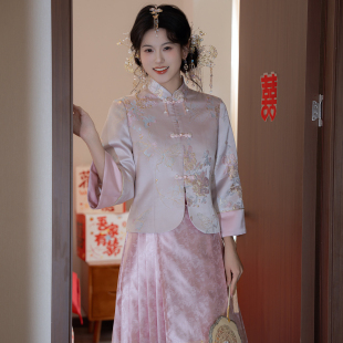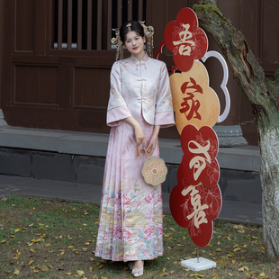 卿如故原创汉服改良新中式 粉色马面裙定婚礼服敬酒服 国风立领短衫