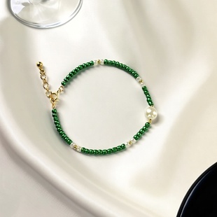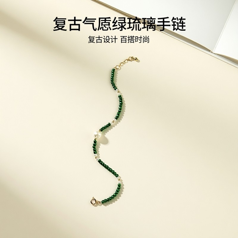 式 新中式 爆25款 年新款 复古百搭气质绿琉璃防珍珠手链2026