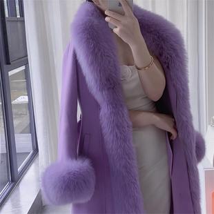 高级感西装 3ts 秋冬1oo羊毛毛呢外套立领中长款 呢子大衣女