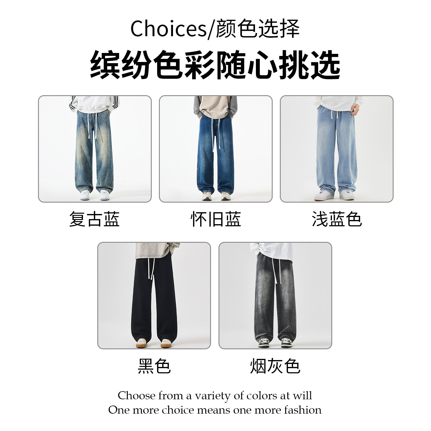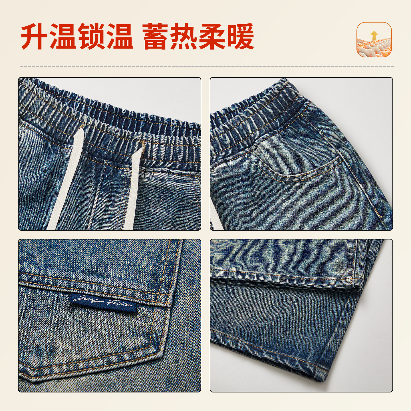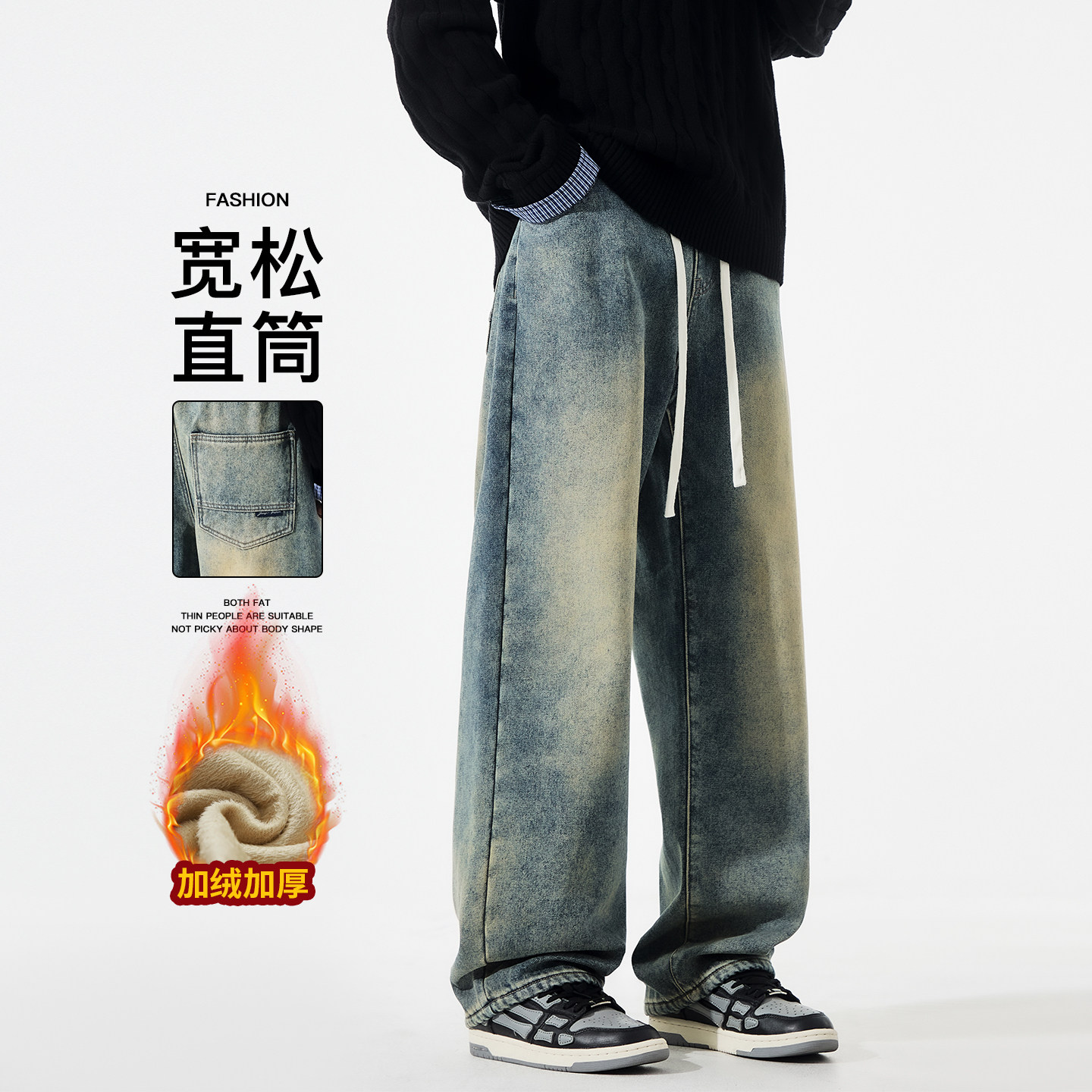 阔腿宽松直筒学生百搭休闲长裤 加绒加厚牛仔裤 秋冬季 2025新款 男款
