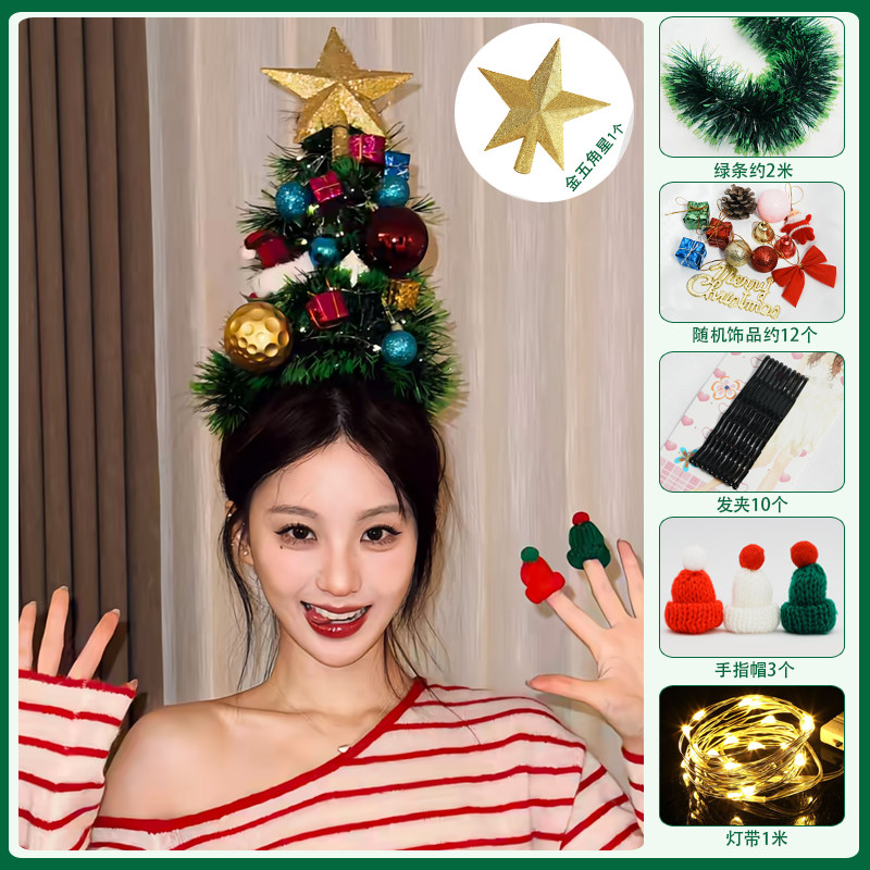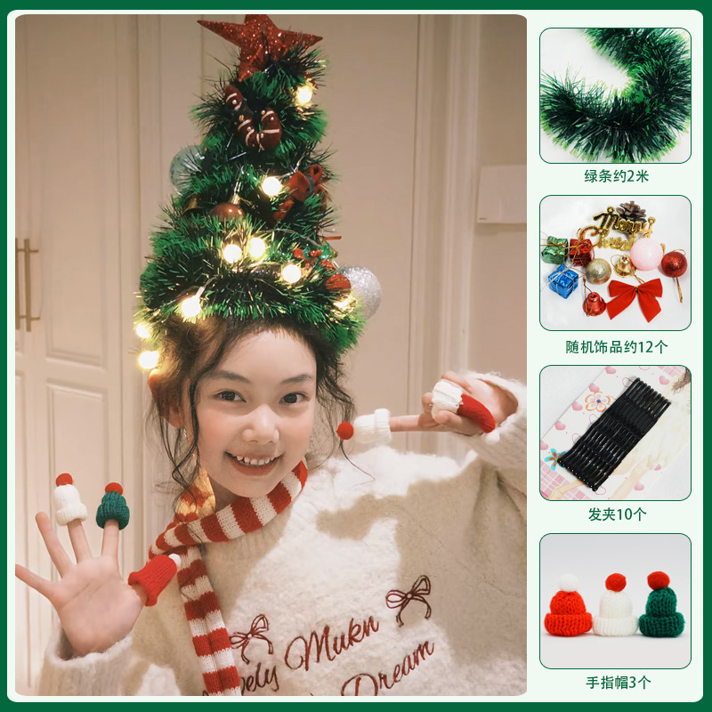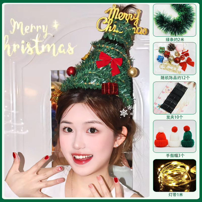 圣诞树头顶材料包饰头发绿毛条圣诞节氛围装 饰 饰品妆扮拍照道具装