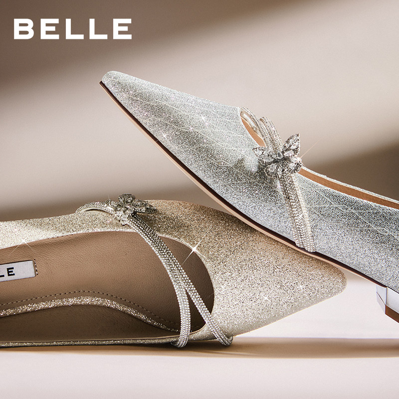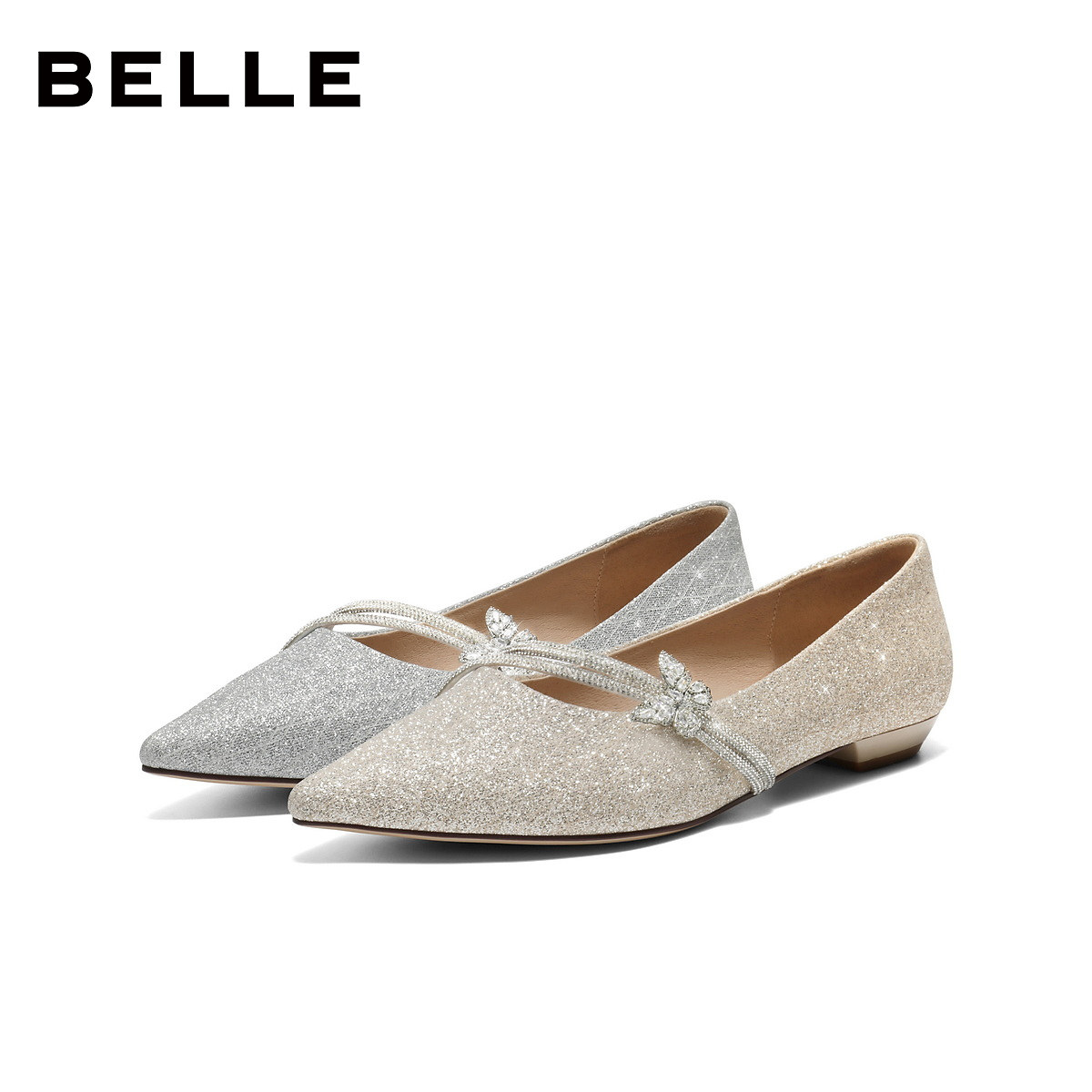 年会不累脚秀禾婚鞋 新款 子B2989A预 女26春季 百丽平底浅口金色单鞋