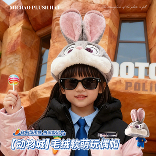 可爱蓝色企鹅毛绒帽子围巾一体女款 保暖防寒百搭护耳套头帽 秋冬季
