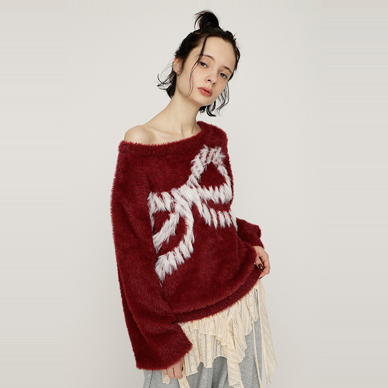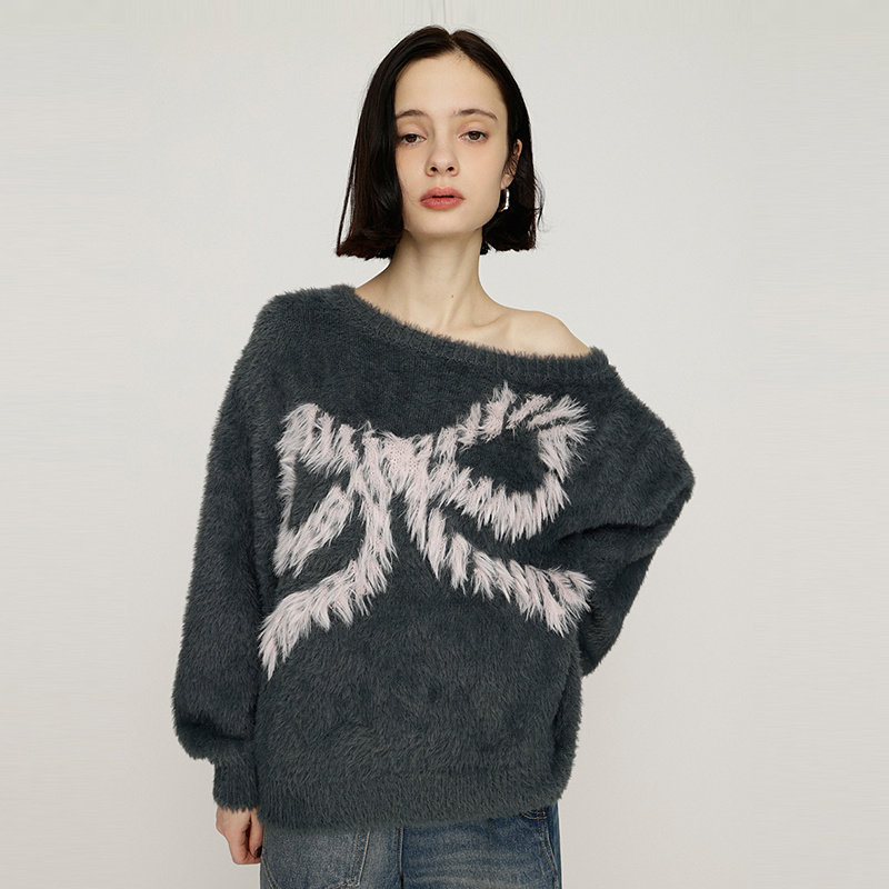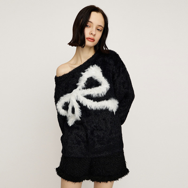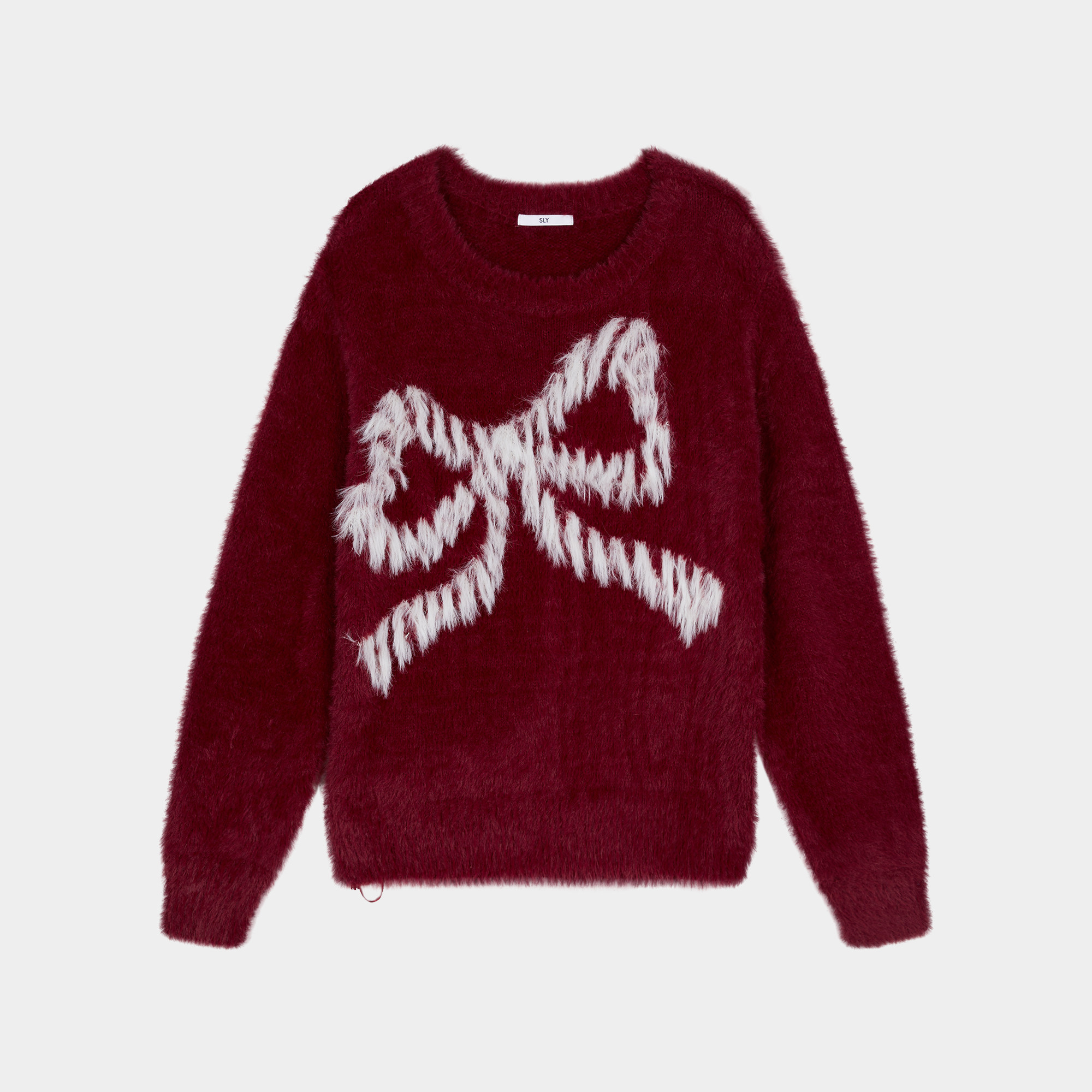 2631 030IA470 SLY2026早春新品 甜美风软糯毛绒蝴蝶结圆领毛针织衫