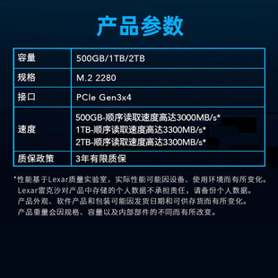 500G 3000MB SSD固态硬盘 NVMe M.2接口 雷克沙NM610PRO
