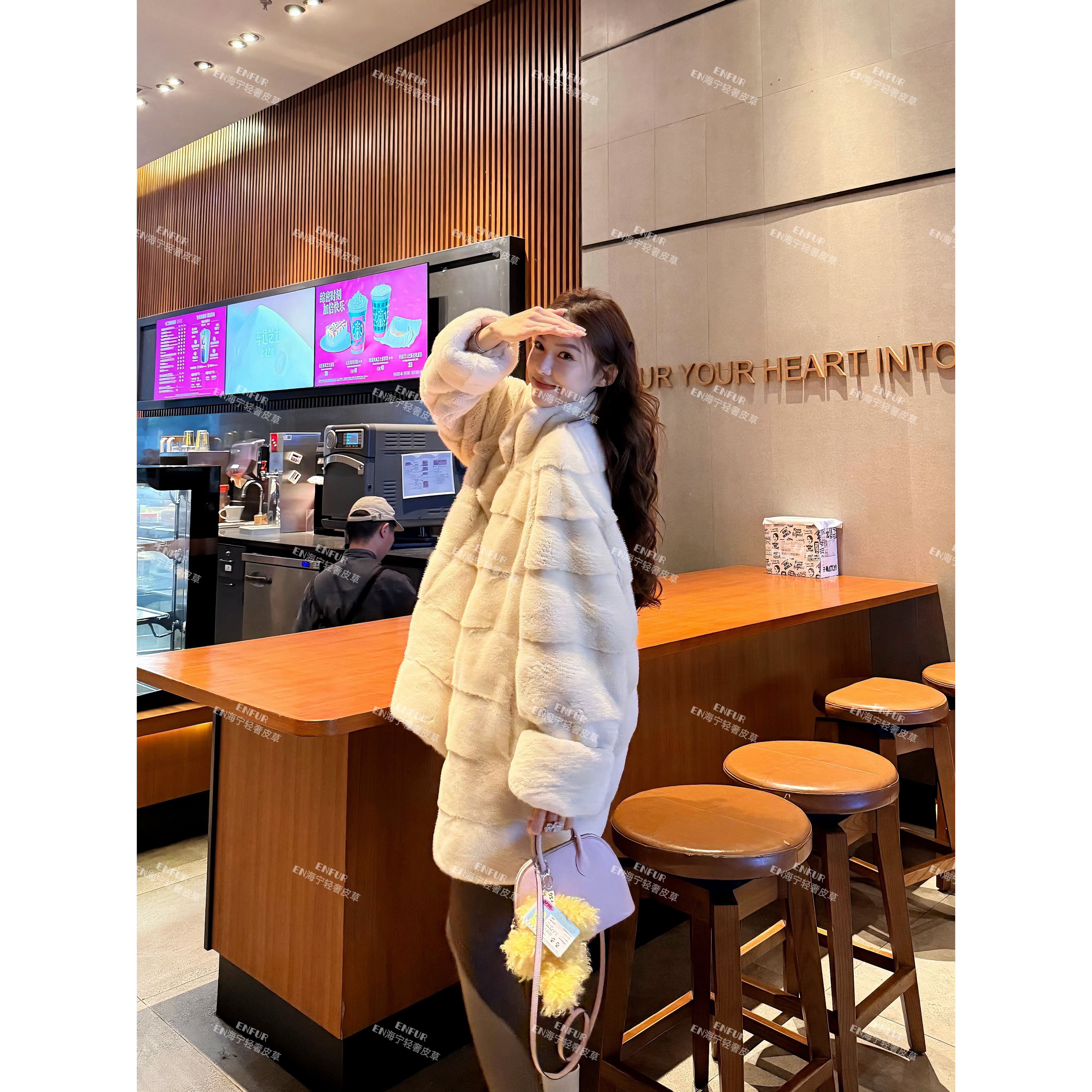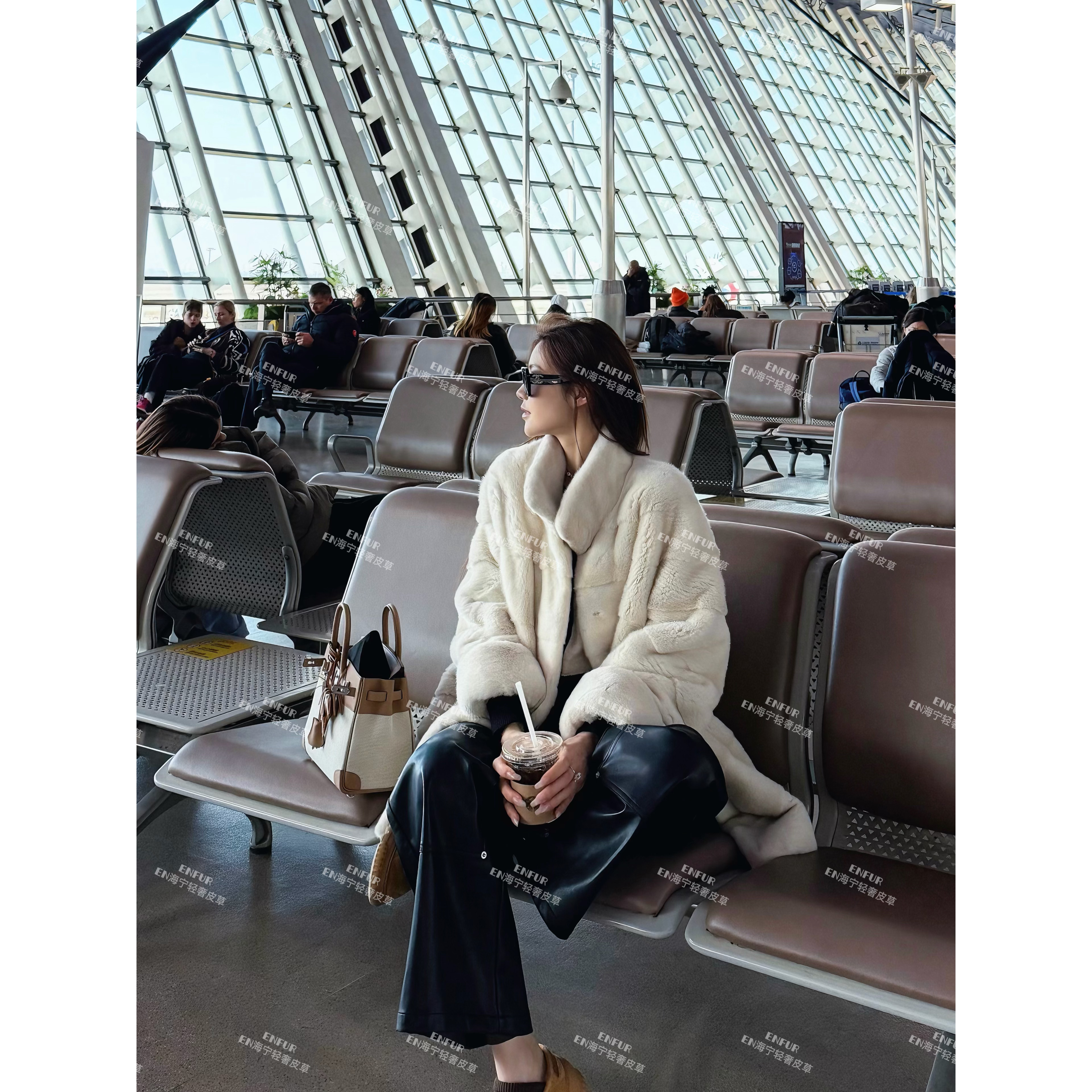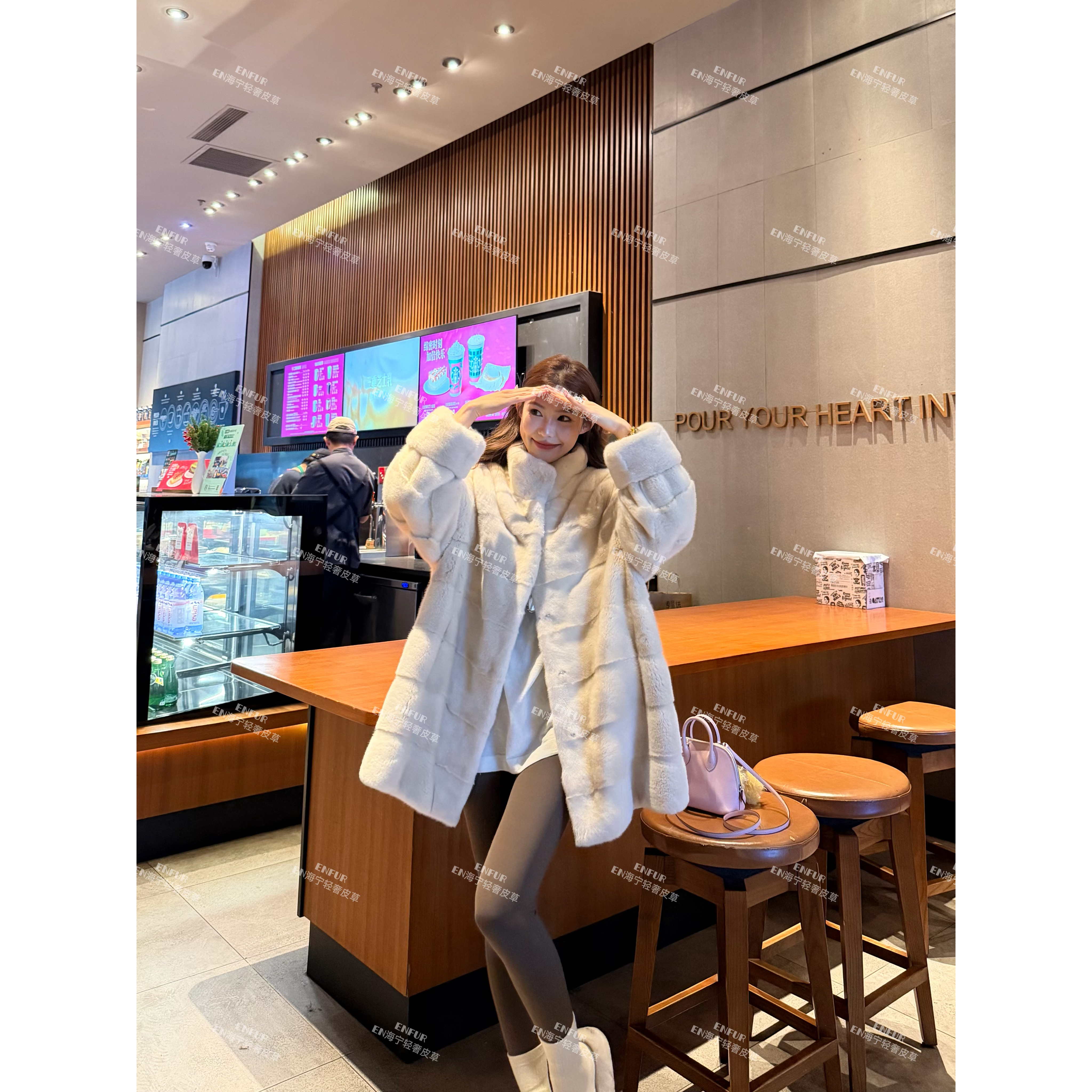 ENFUR 紫金级天鹅绒横排水貂皮草外套GG79172 雪漫冬日