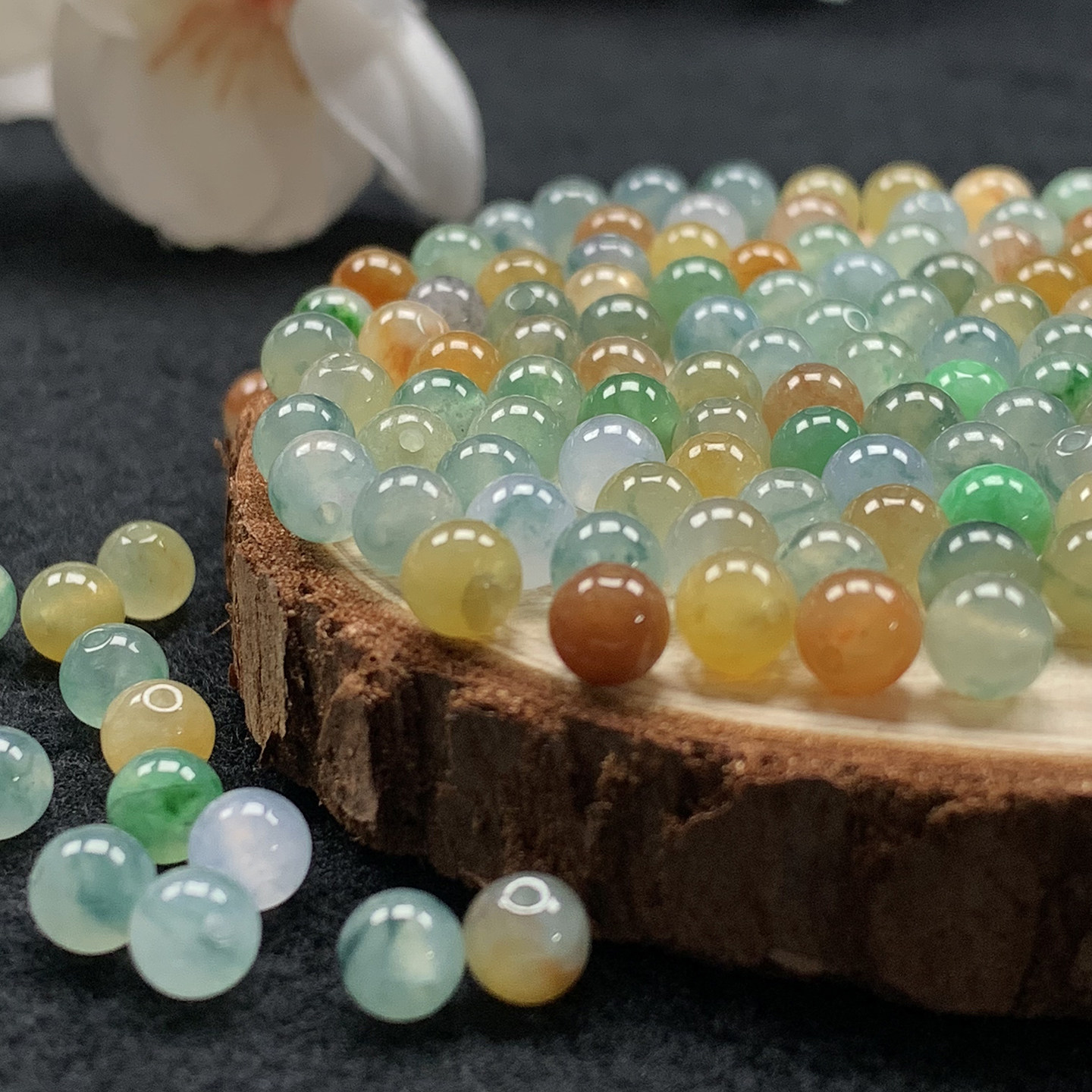 鱼鱼翡翠直播天然缅甸翡翠A货三彩圆珠DIY手串定制链接 私拍无效