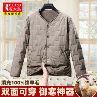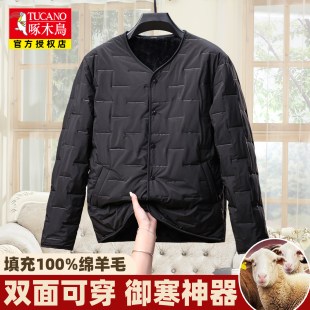 啄木鸟男加绒羊毛内胆棉衣中年青少年校服神器保暖内衣双面穿棉袄