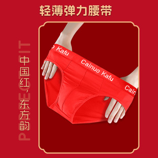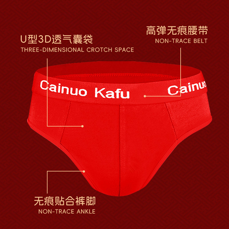 三角裤 男款 头男生底裤 衩男式 七匹狼本命年男士 纯棉短裤 大红色内裤
