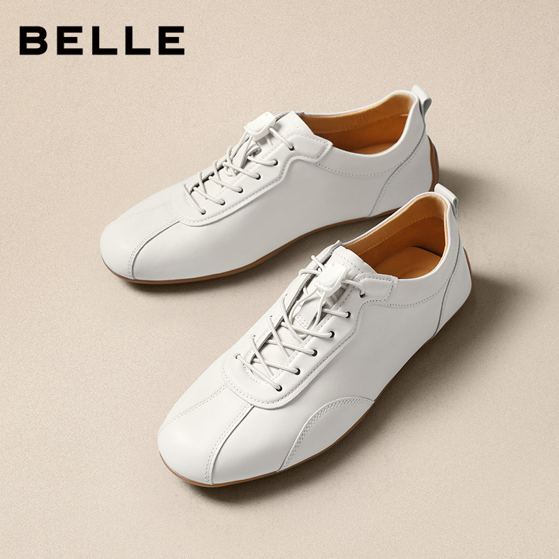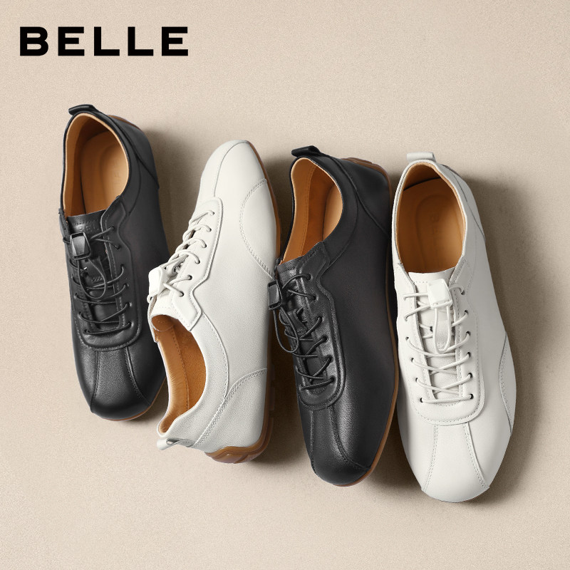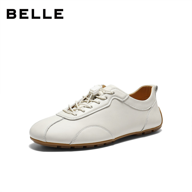 免系带休闲小白板鞋 张凌赫同款 男士 牛皮德训赛车鞋 8ZF01A 百丽男鞋