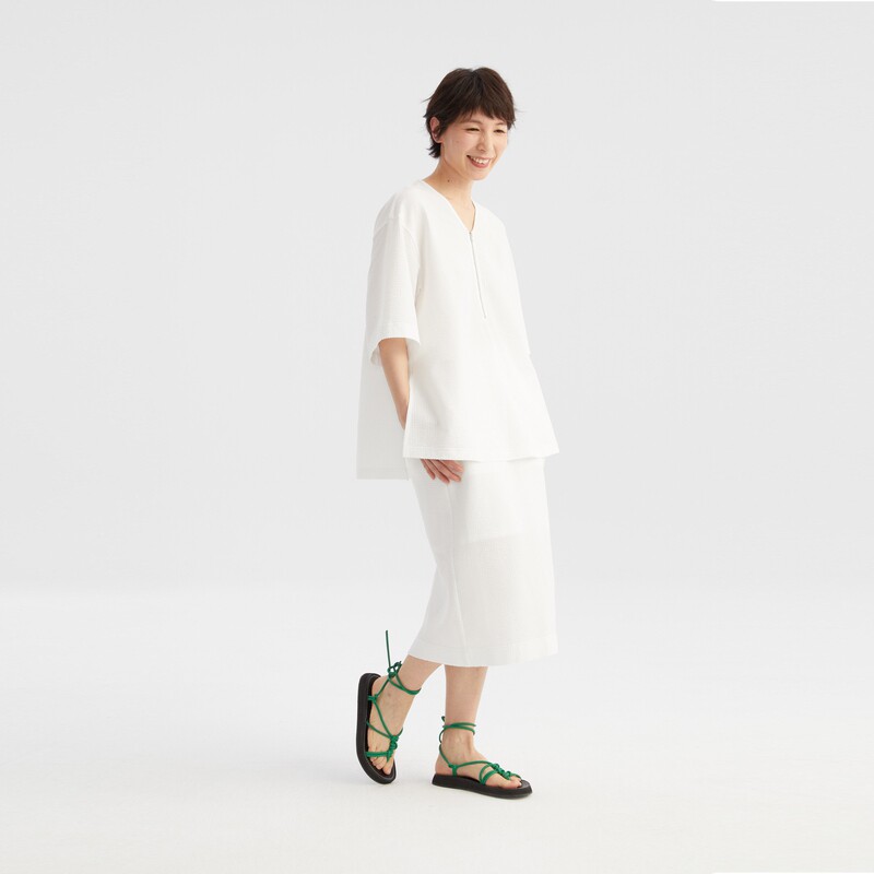 素然夏季 ZUCZUG 女士气质进口泡泡纱棉布直身白色长裙 新品