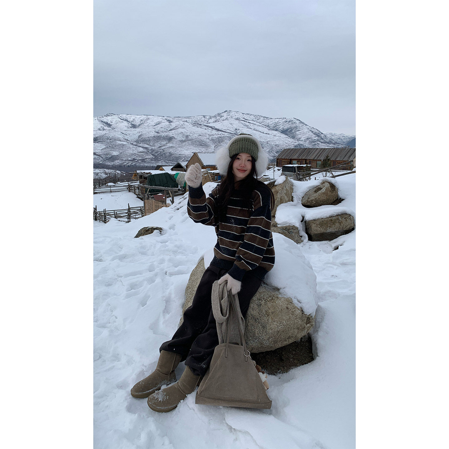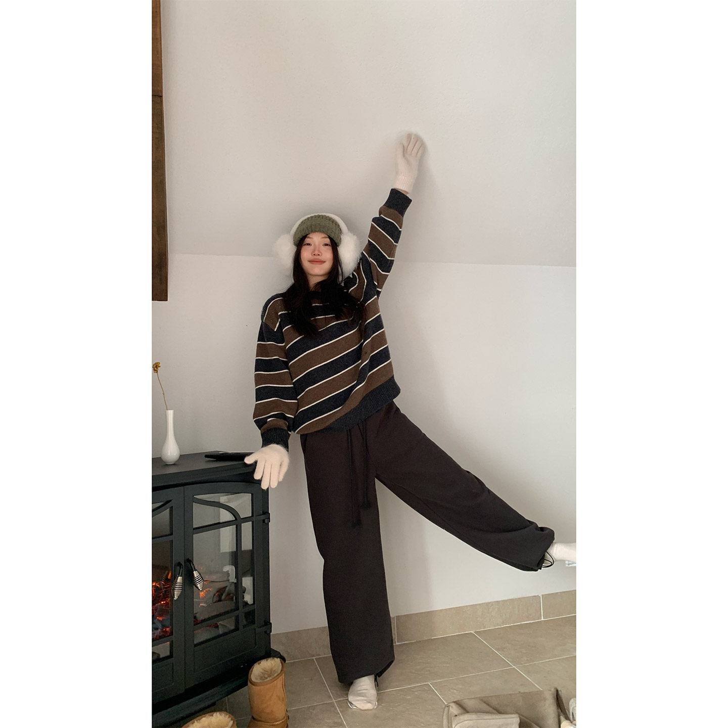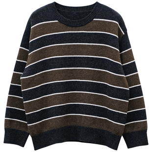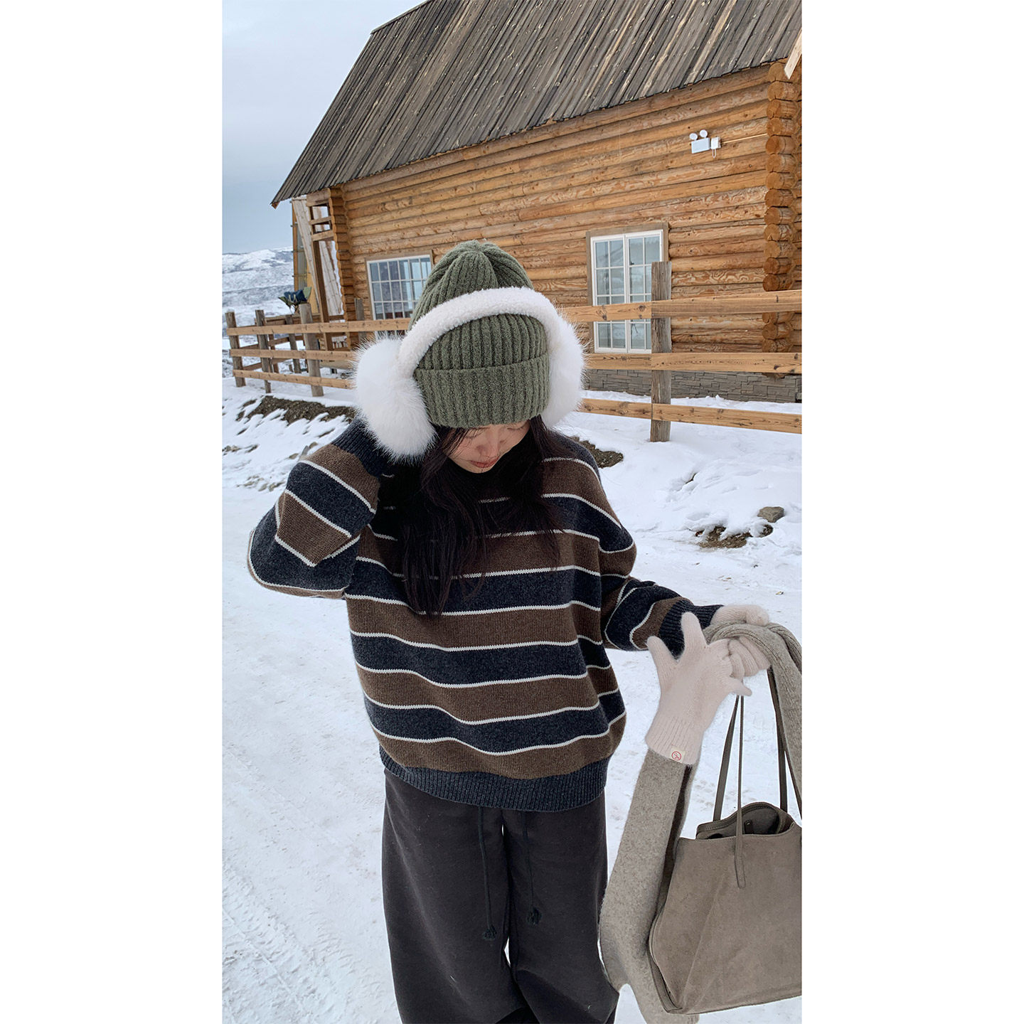 针织衫 短款 复古日系羊毛条纹宽松套头毛衣女冬季 一三良品小个子