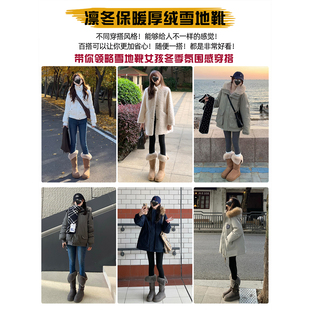 加绒保暖内增高中筒东北灰色高筒棉鞋 厚底雪地靴长筒2025新款 冬季