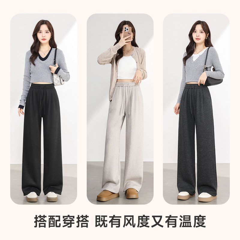 子H 小个子阔腿裤 班尼路S&k系列灰色加绒休闲糯米裤 女2025秋冬新款