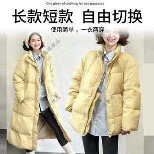 过膝宽松加厚半成品 黑金面包羽绒服女长款 九成品翻新加工定制