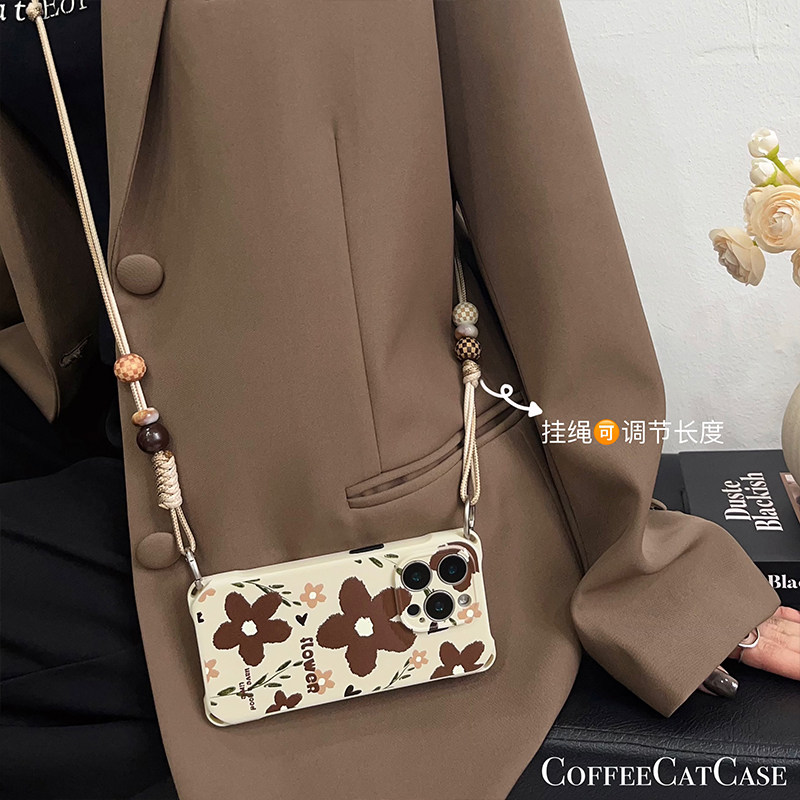a52 a35链条a36 a55 s21可背带a06斜跨a13调节a24 棕意咖花适用三星note20手机壳s25ultra挂绳s24fe斜挎s23