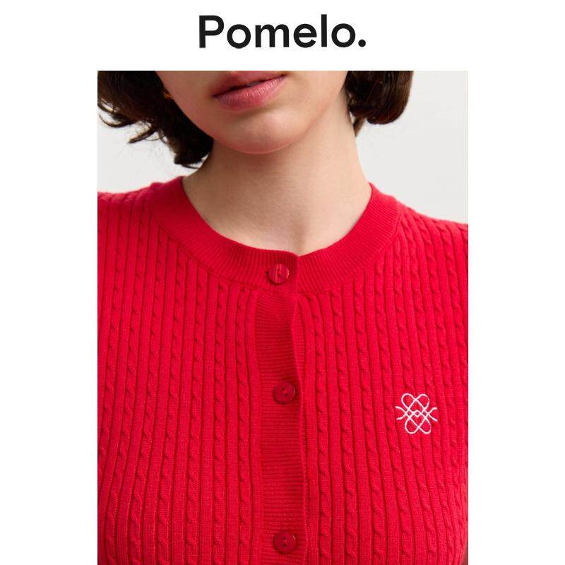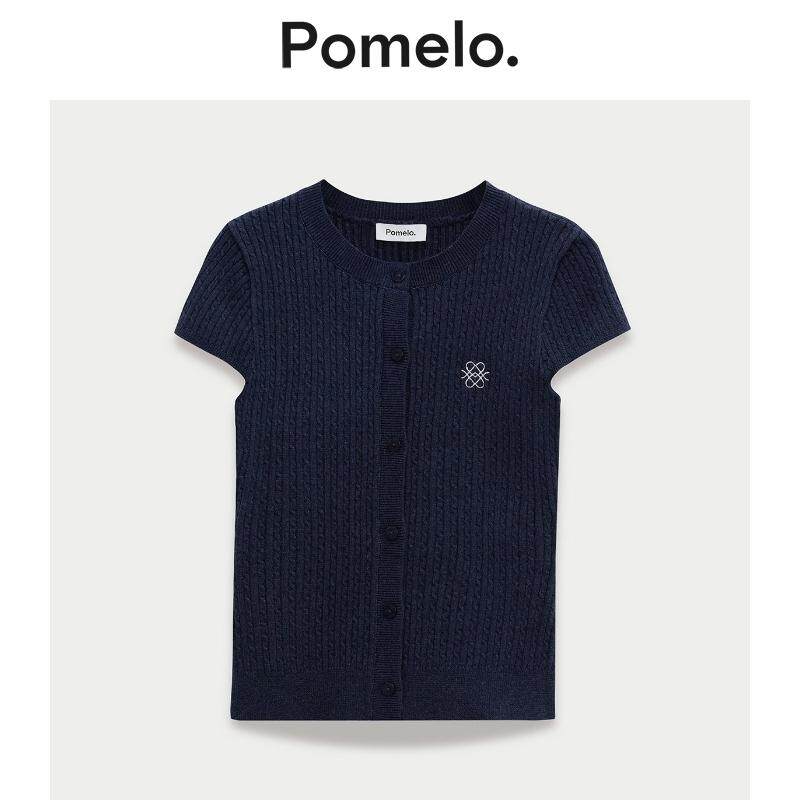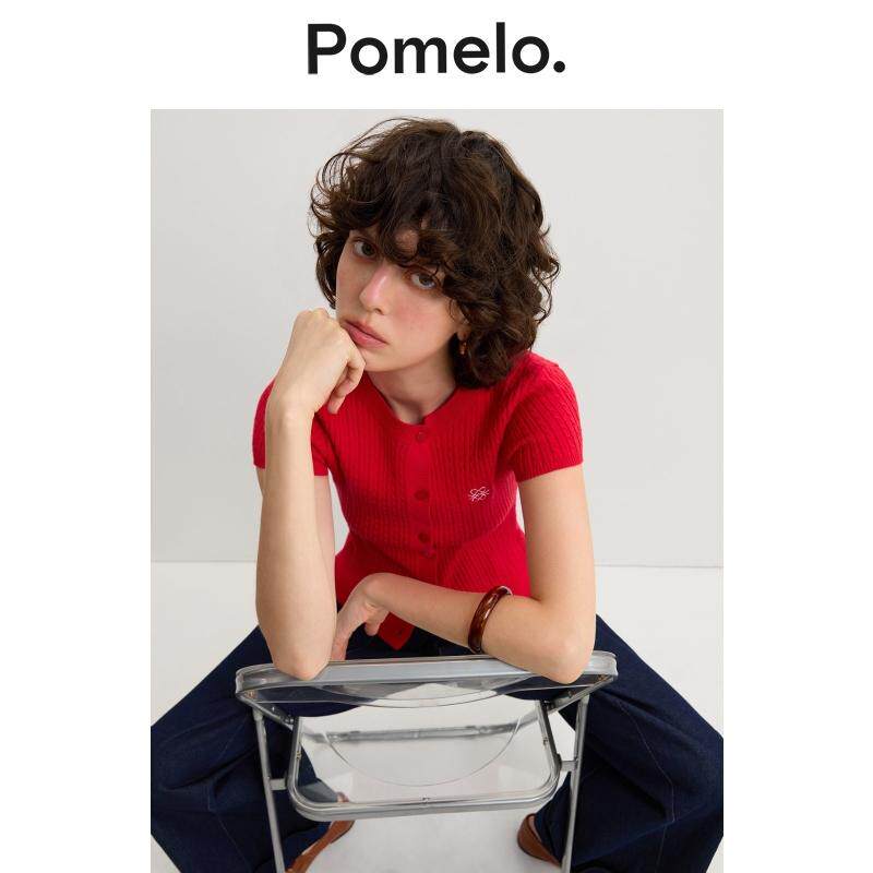 显瘦短袖 坑条圆领修身 针织上衣女 甜辣风针织衫 Pomelo