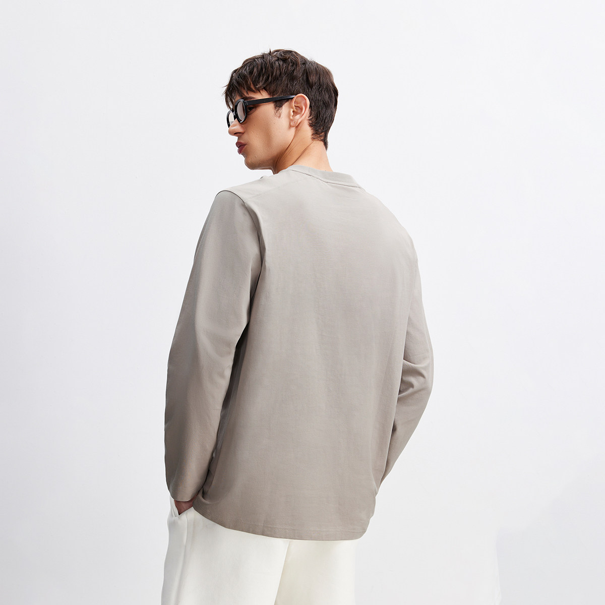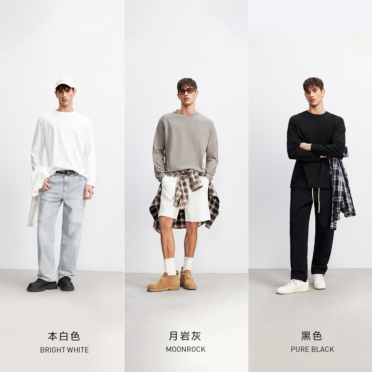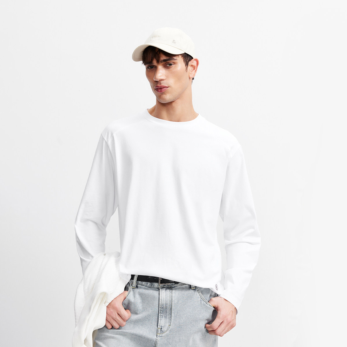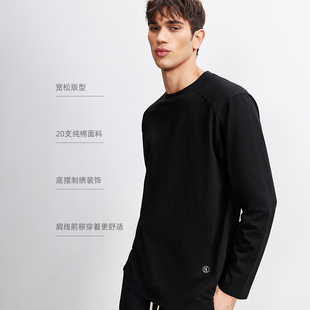 T恤纯色圆领宽松撞色刺绣上衣男士 杰克琼斯男装 纯棉长袖 新款 春季