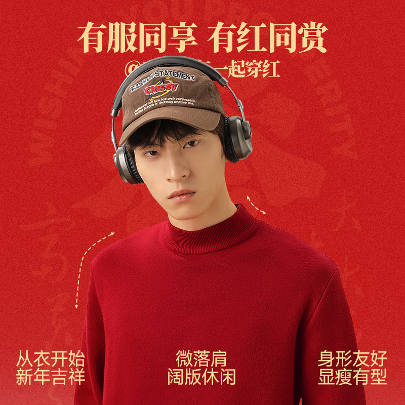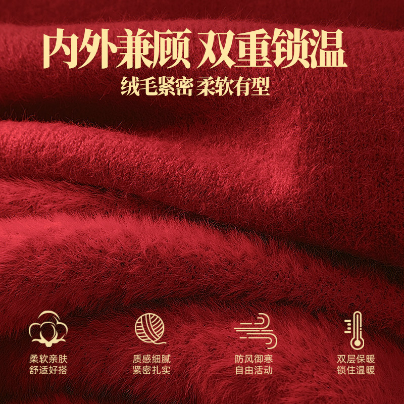 回力红色半高领毛衣男冬季 加绒毛线衣服Z 情侣本命马年针织打底衫