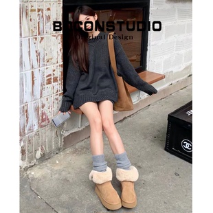 中筒厚底长筒靴子 东北雪地棉鞋 保暖雪地靴女加绒毛毛2025新款 冬季