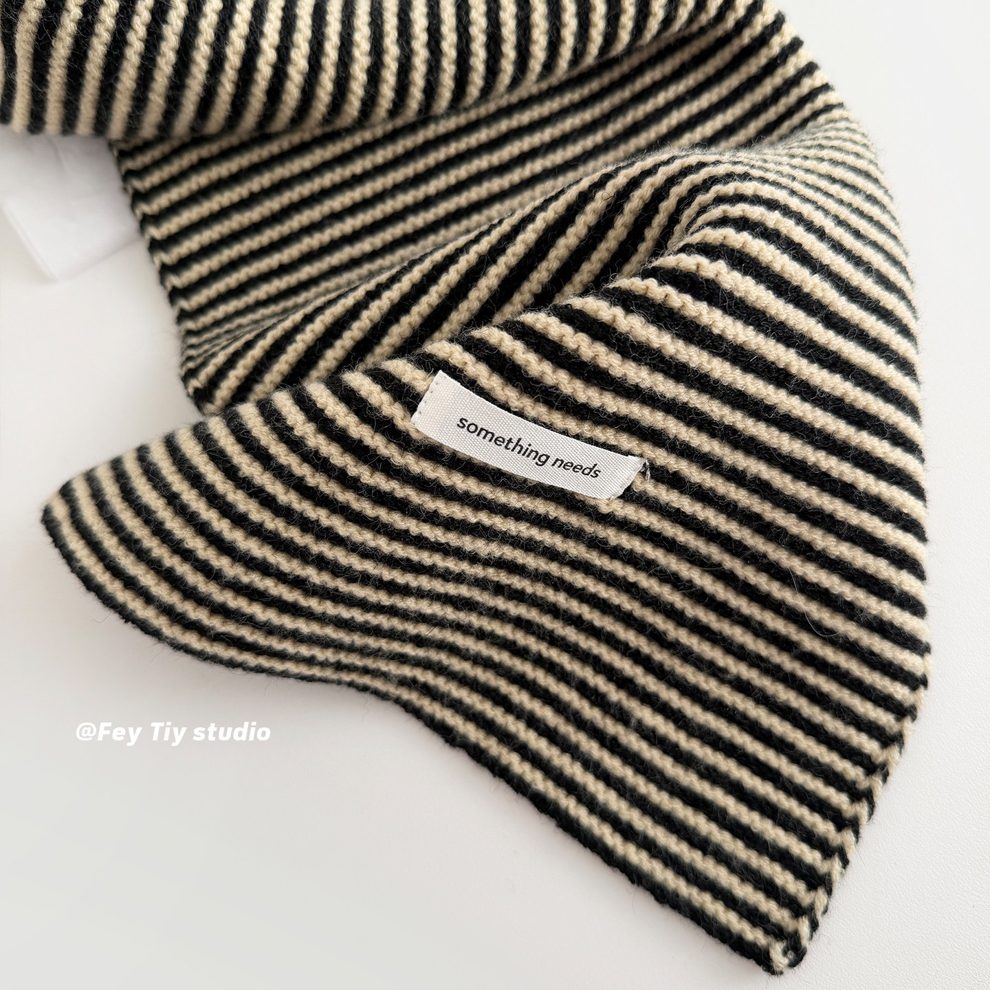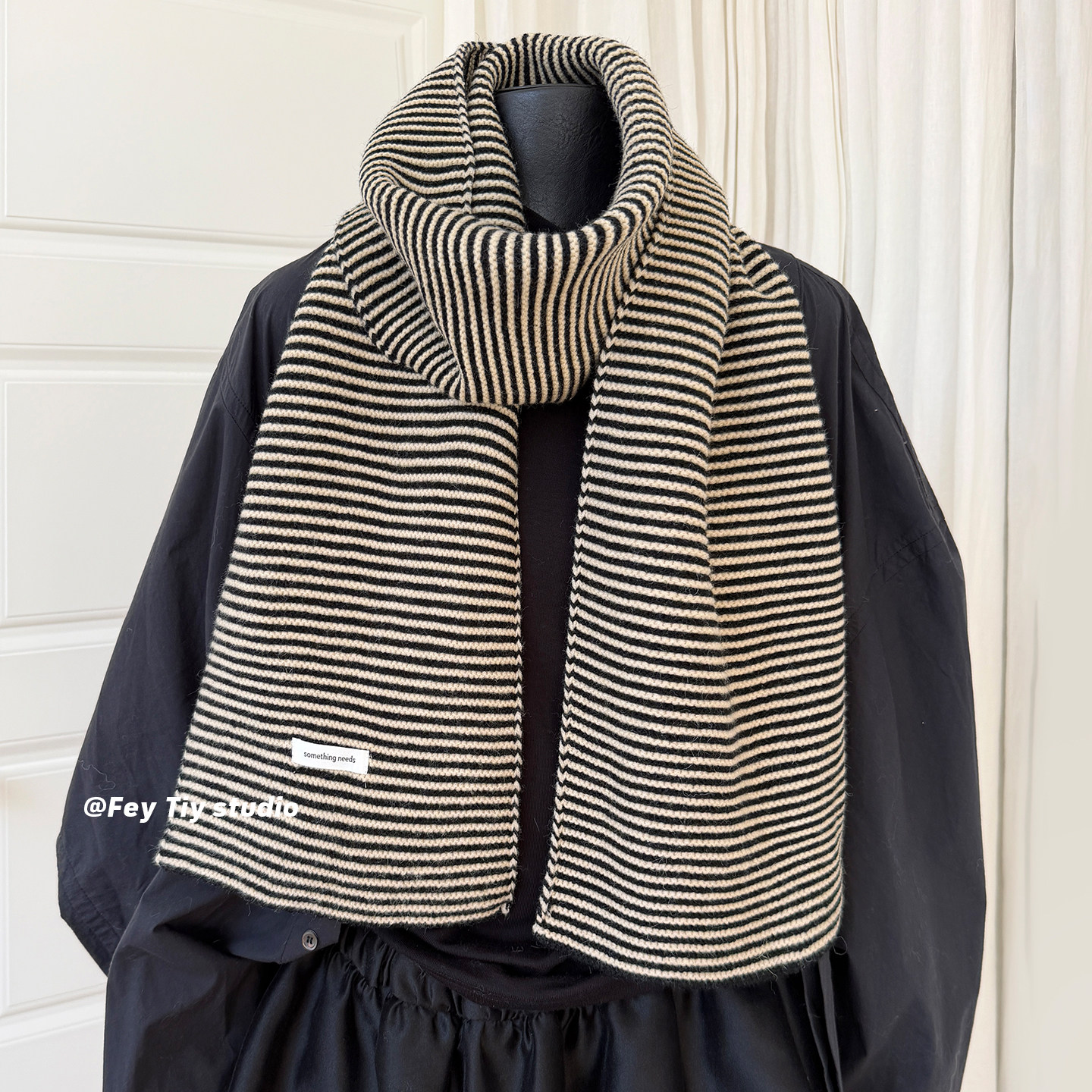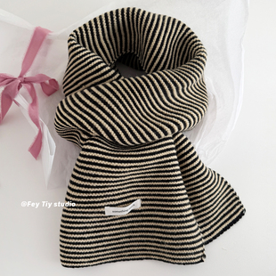 feytiy 时髦复古百搭条纹针织围巾冬保暖黑白羊毛围脖男女 纯羊毛