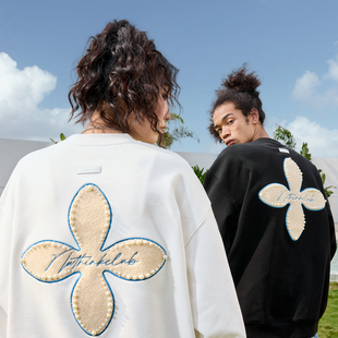 马克华菲卫衣男士 秋冬加绒潮牌重磅复古解构捏褶皱宽松圆领套头衫
