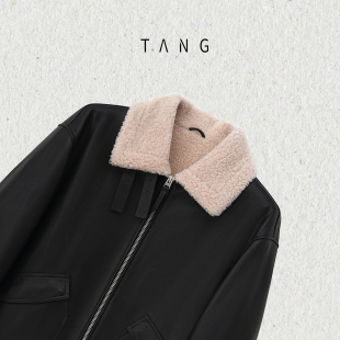 男复古夹克外套 进口羊皮羊毛皮皮衣2025秋冬新款 阿汤哥TANG 暖黑